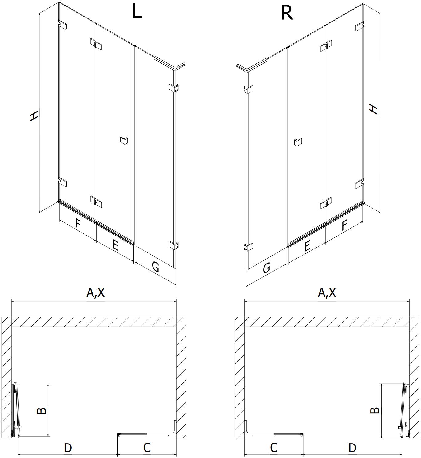 Üveg vastagsága: ajtó 6 mm, fal 8 mm