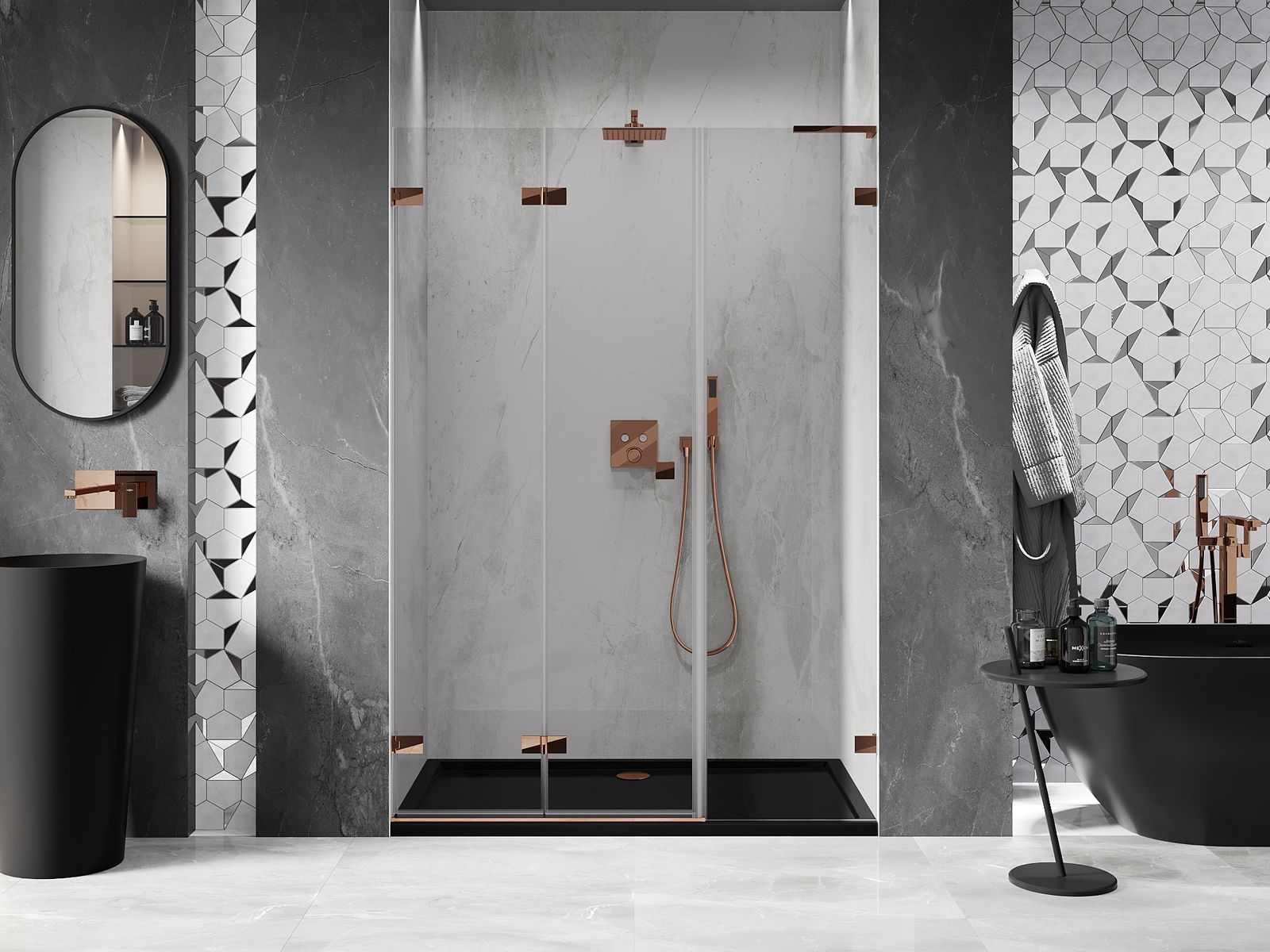 Mexen Lunar-F L összecsukható bal oldali zuhanyajtó 130 cm, átlátszó, rózsaarany - 836SL-130-050-60-00-L