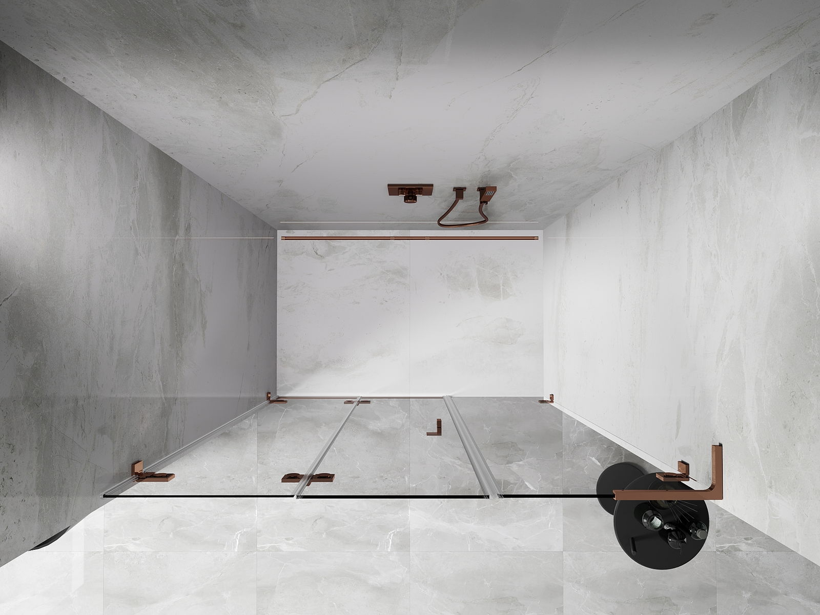 Mexen Lunar-F L összecsukható bal zuhanyajtó 140 cm, átlátszó, rózsaarany - 836SL-140-050-60-00-L