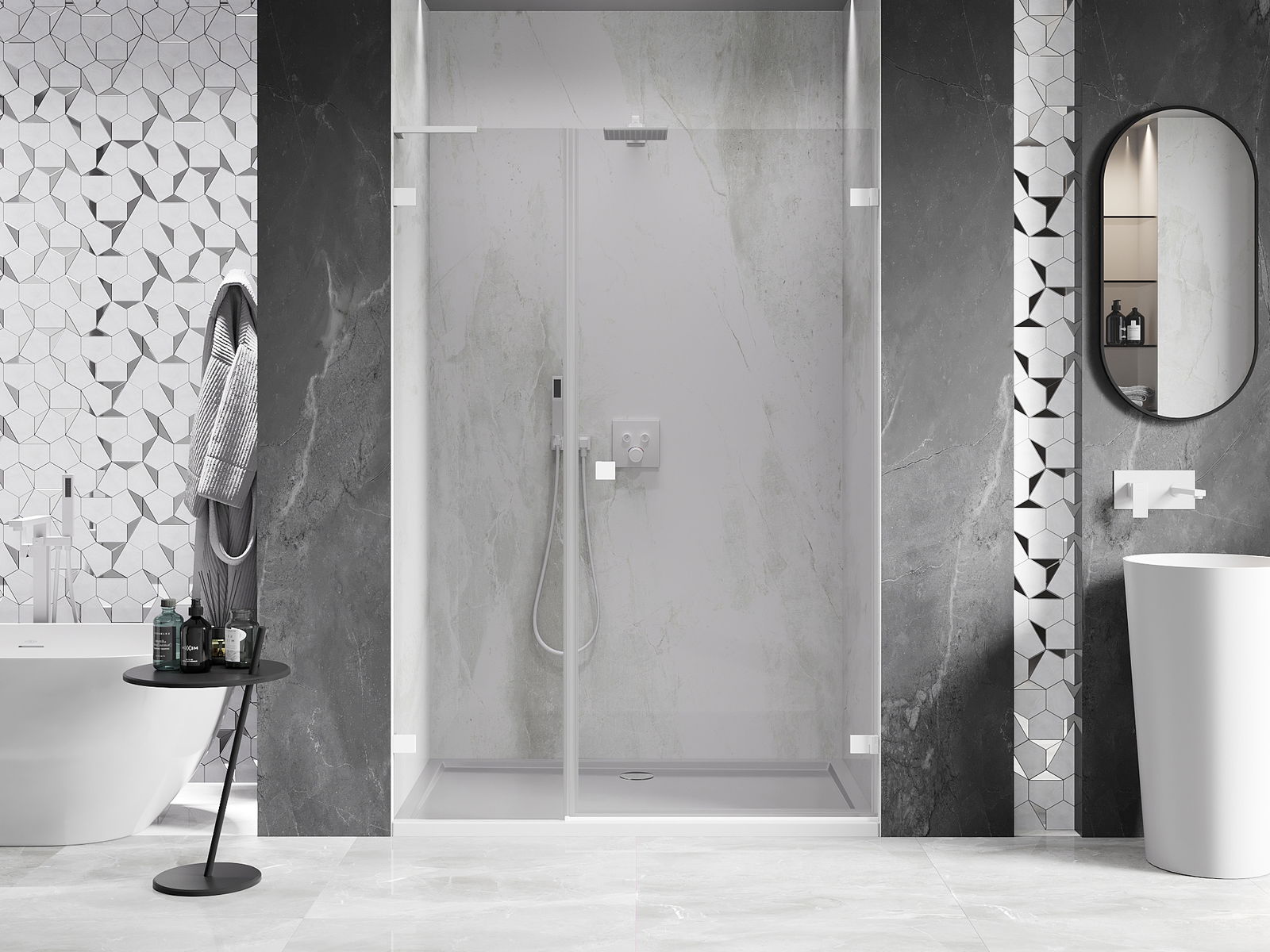 Mexen Lunar-B L zuhanyajtó, jobbra nyíló, 135 cm, átlátszó, fehér - 832SL-135-050-20-00-P