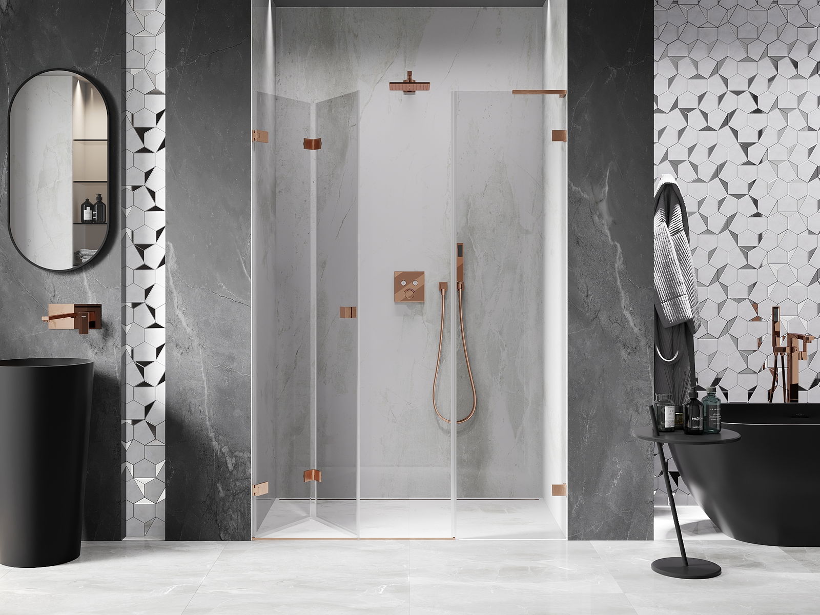 Mexen Lunar-F L összecsukható zuhanyajtó bal 140 cm, átlátszó, kefeített réz - 836SL-140-050-65-00-L