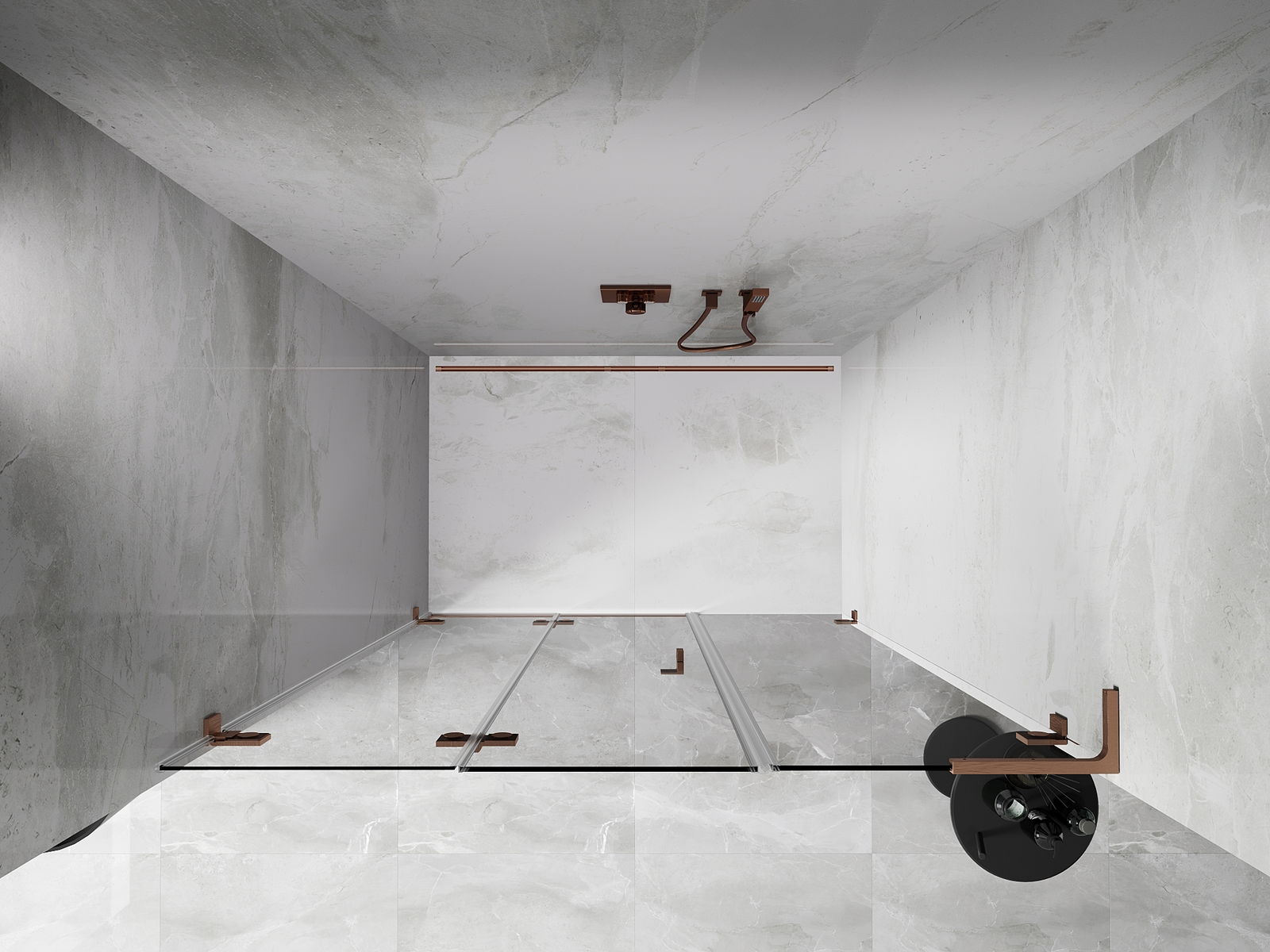Mexen Lunar-F L összecsukható zuhanyajtó bal 150 cm, átlátszó, kefélt réz - 836SL-150-050-65-00-L