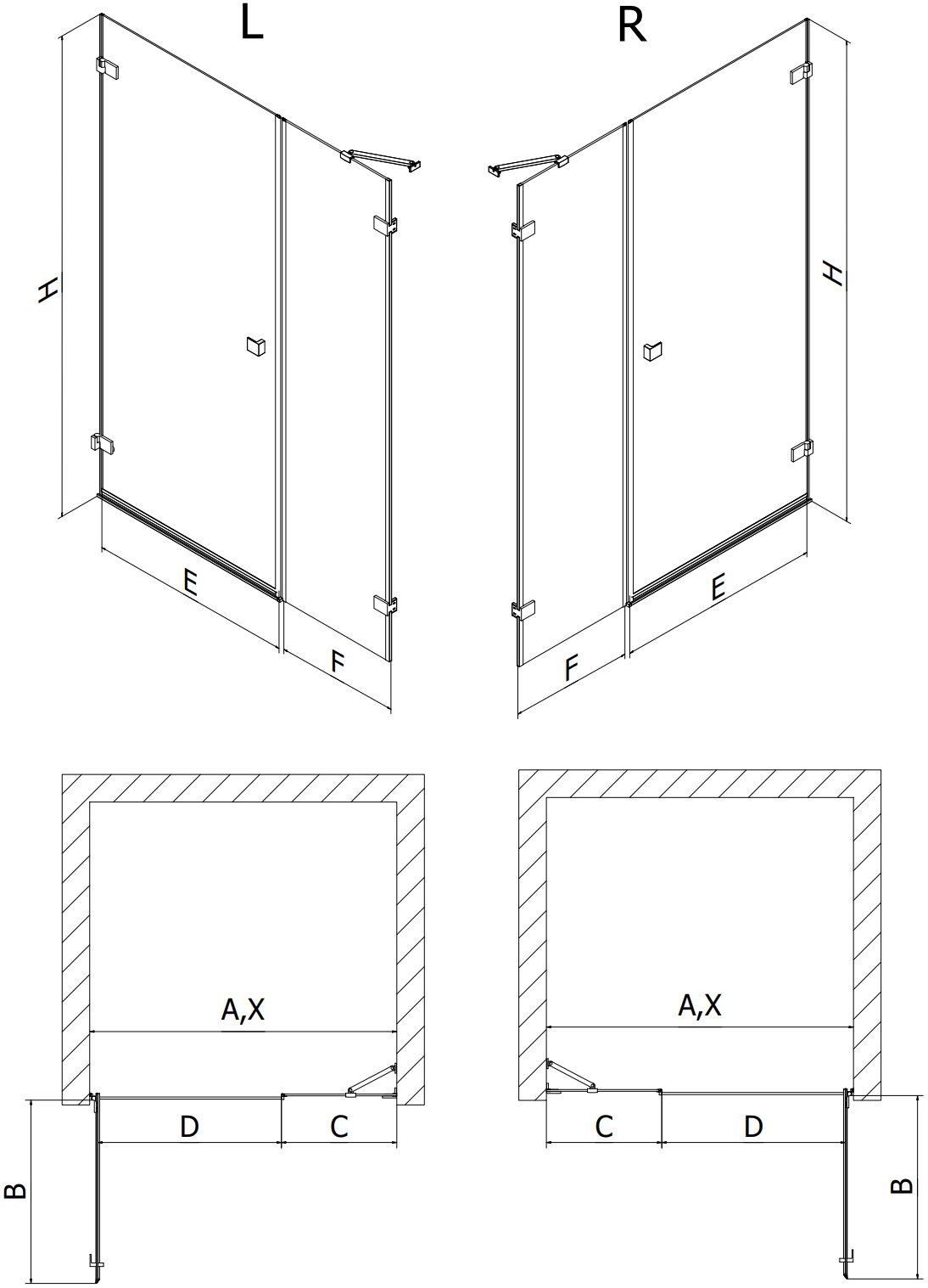 Üveg vastagsága: ajtó 6 mm, fal 8 mm