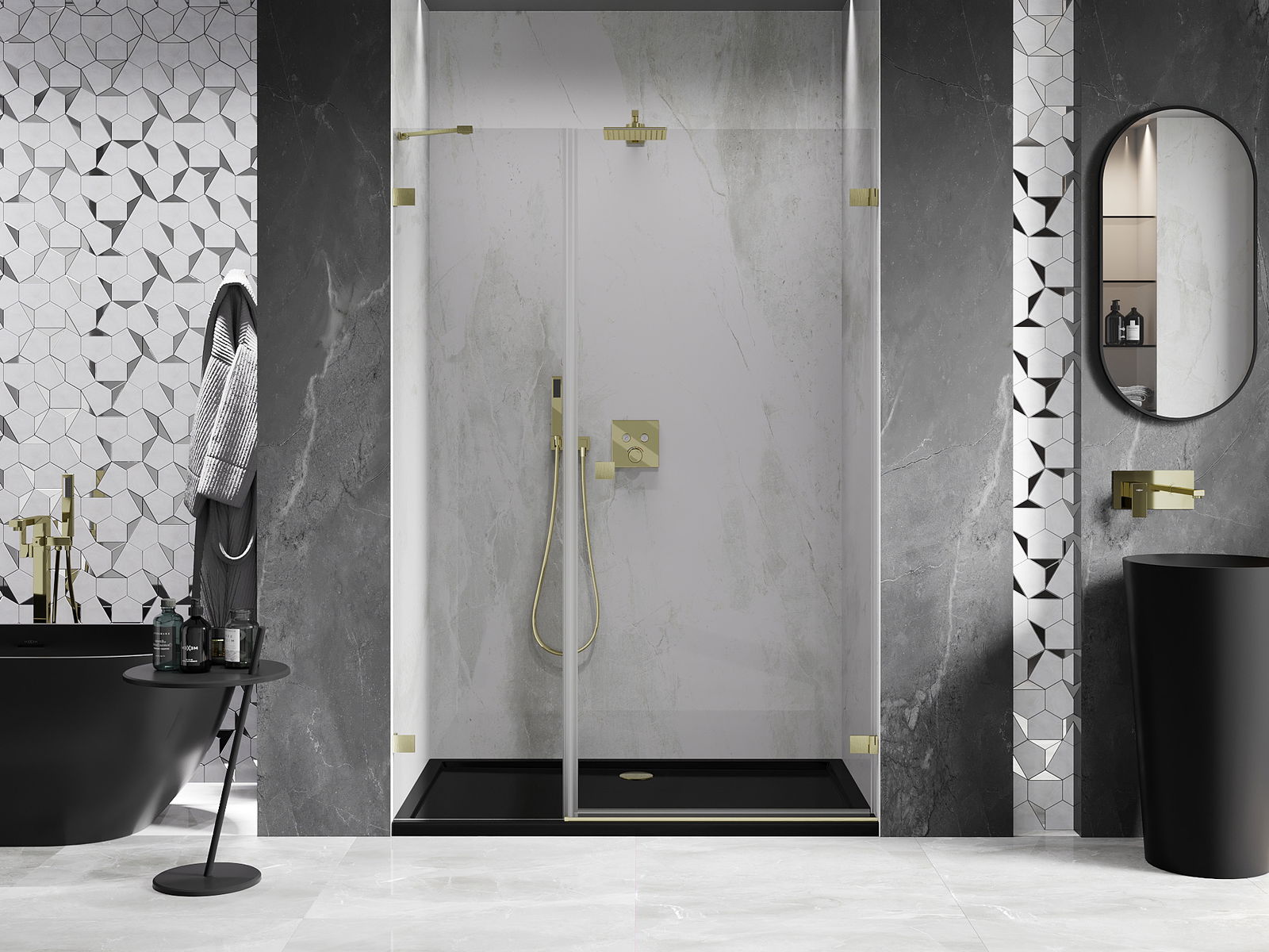 Mexen Lunar-B 135 cm-es, jobb oldali, nyíló zuhanyajtó, átlátszó, arany szálcsiszolt - 832S-135-050-55-00-P