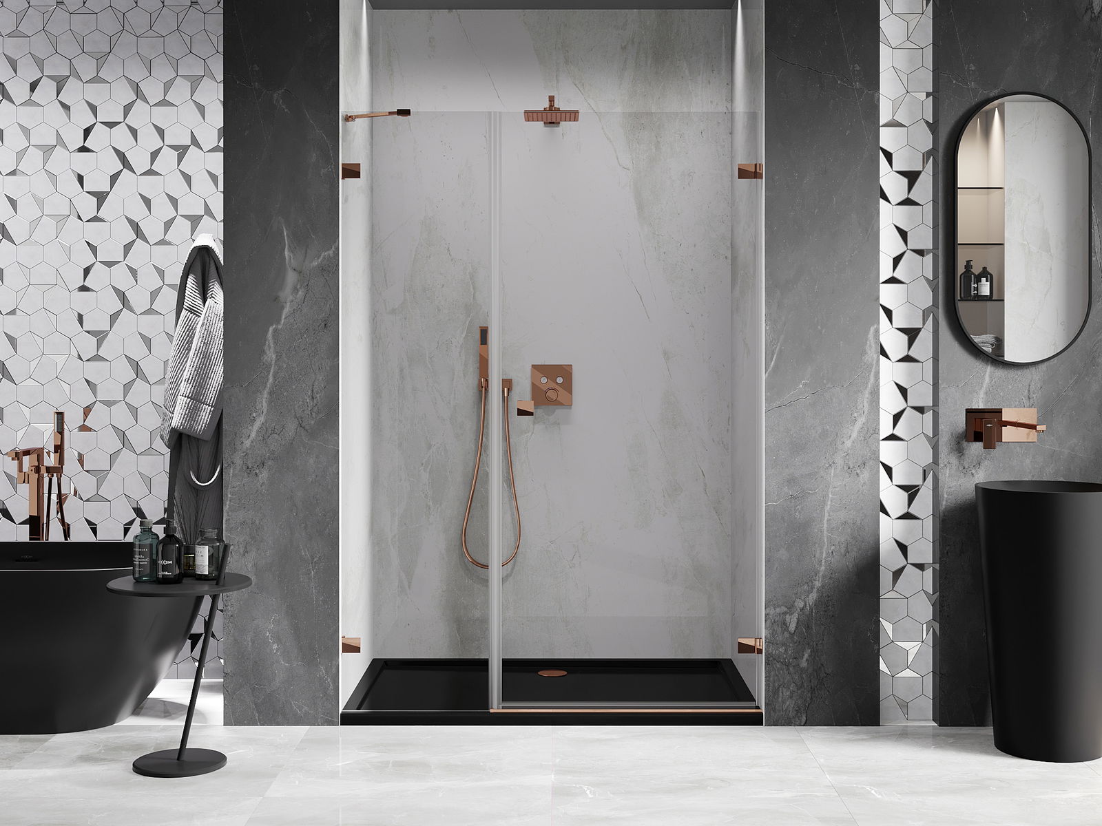 Mexen Lunar-B jobbos nyíló zuhanyajtó 110 cm, átlátszó, rózsaarany - 832S-110-050-60-00-P