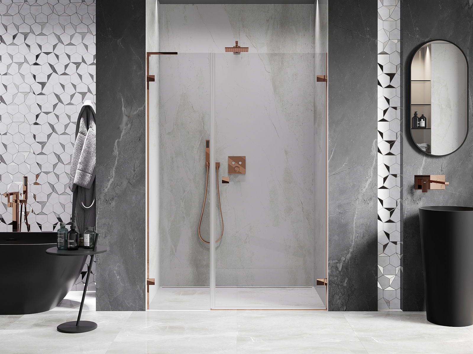 Mexen Lunar-B L jobbos, nyíló zuhanyajtó 130 cm, átlátszó, rózsaarany - 832SL-130-050-60-00-P