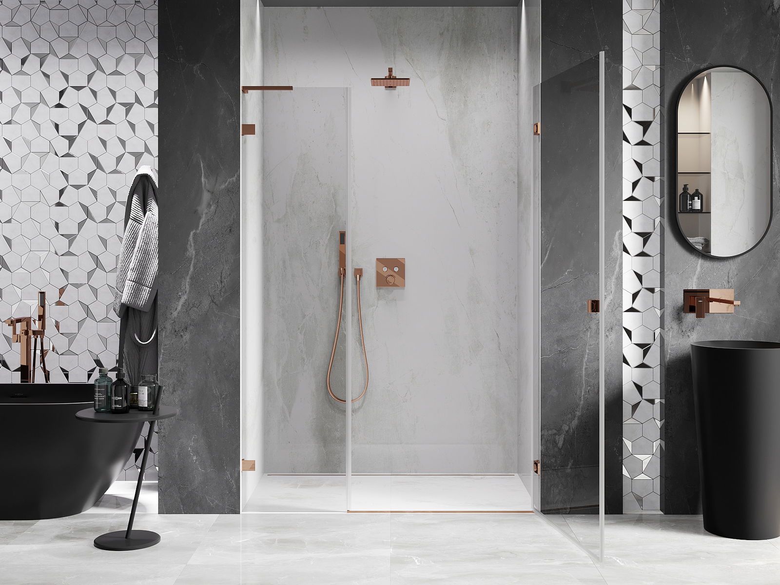 Mexen Lunar-B L zuhanyajtó nyíló jobb oldali 145 cm, átlátszó, rózsaarany - 832SL-145-050-60-00-P