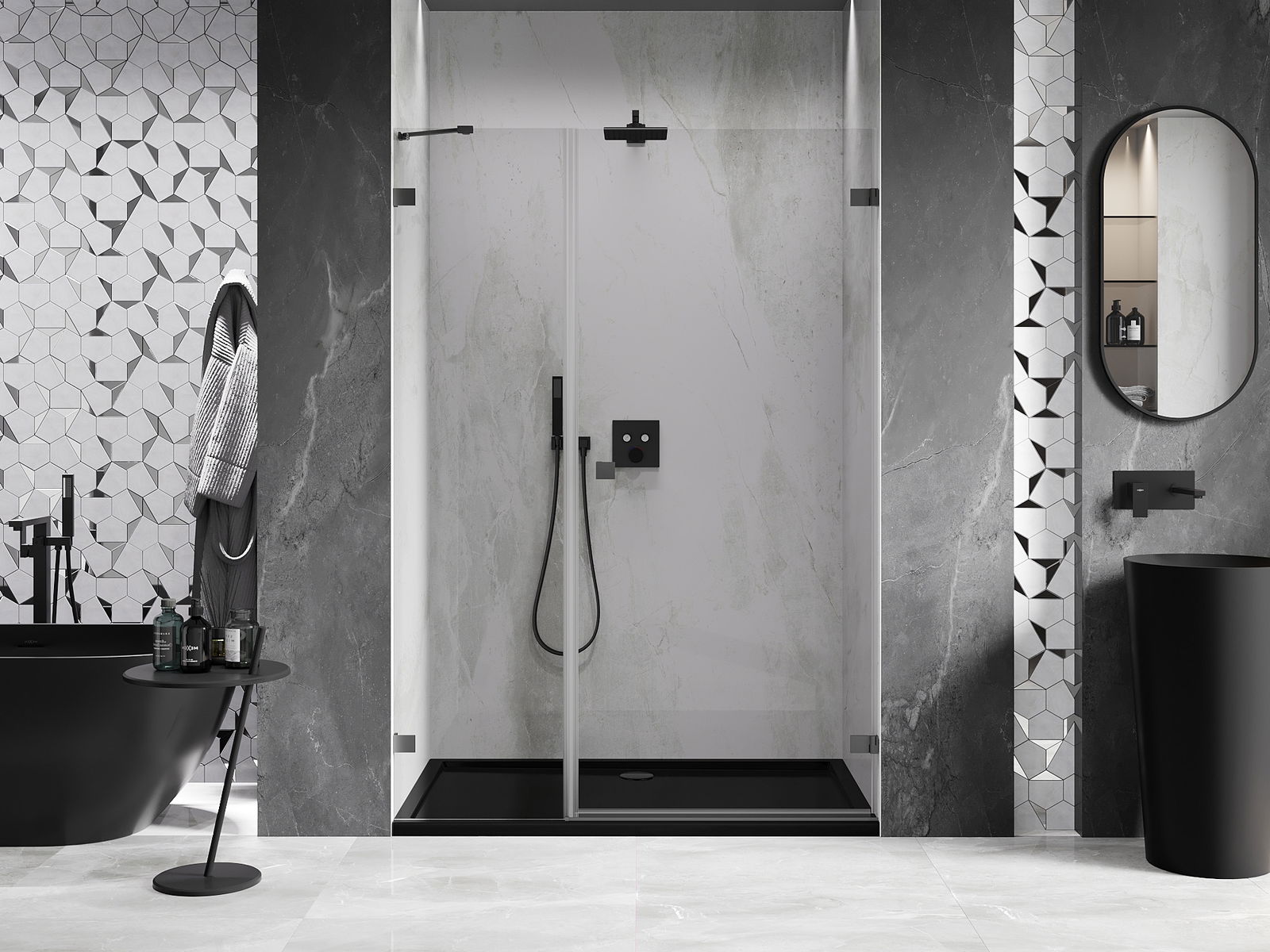 A terméket igény szerint felszerelheti akár a zuhanytálcára, akár közvetlenül a padlóra. Az univerzális szerelési mód lehetővé teszi a termék alkalmazkodását különböző típusú fürdőszobákhoz és térbeli konfigurációkhoz.