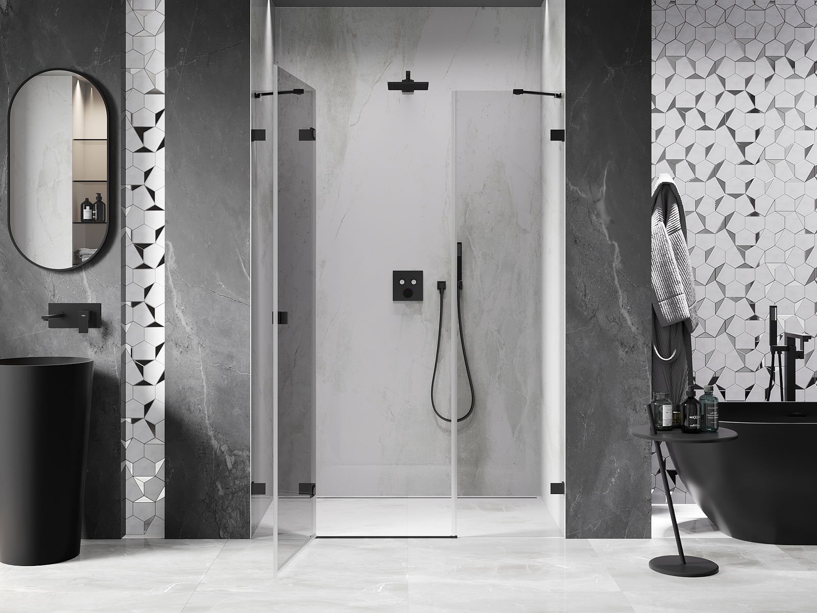 A terméket igény szerint felszerelheti akár a zuhanytálcára, akár közvetlenül a padlóra. Az univerzális szerelési mód lehetővé teszi a termék alkalmazkodását különböző típusú fürdőszobákhoz és térbeli konfigurációkhoz.