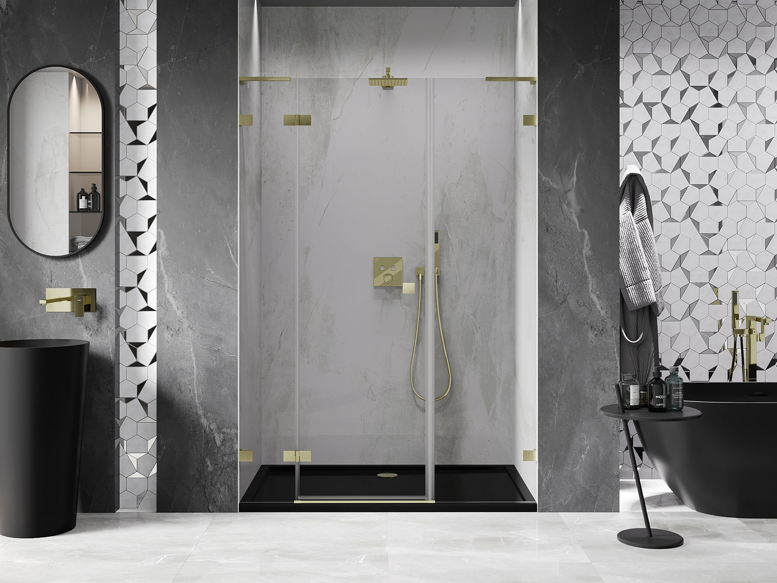 Mexen Lunar L balos zuhanyajtó balos 130 cm, átlátszó, arany szálcsiszolt - 834SL-130-050-55-00-L