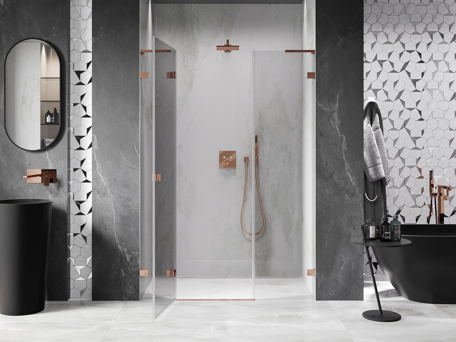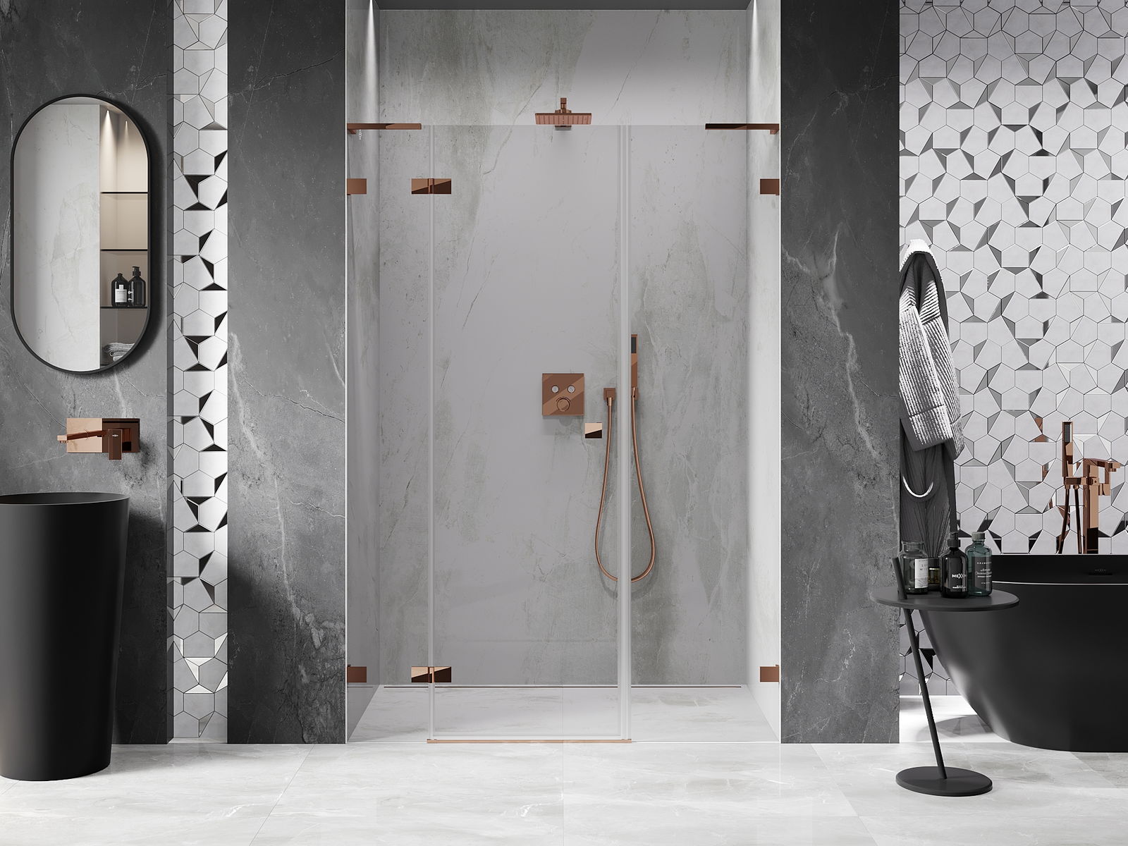 Mexen Lunar L balra nyíló zuhanyajtó 140 cm, átlátszó, rózsaarany - 834SL-140-050-60-00-L