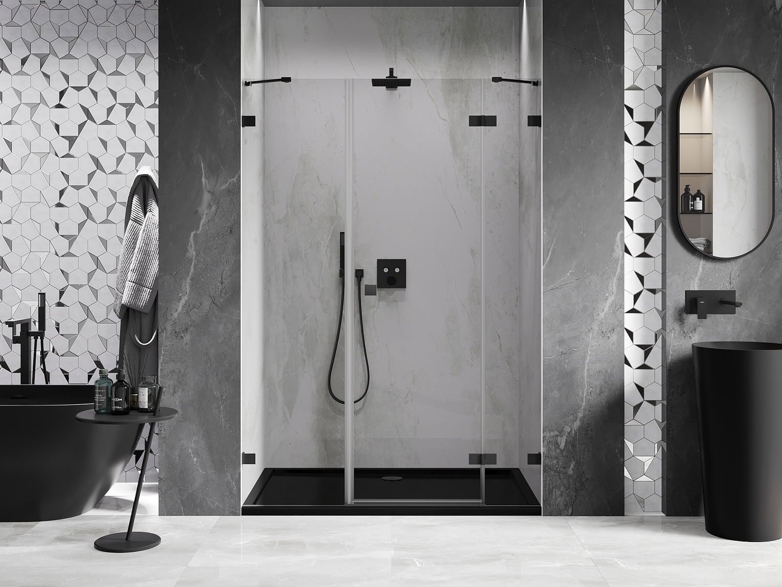 Mexen Lunar jobbos nyíló zuhanyajtó 160 cm, átlátszó, fekete - 834S-160-050-70-00-P