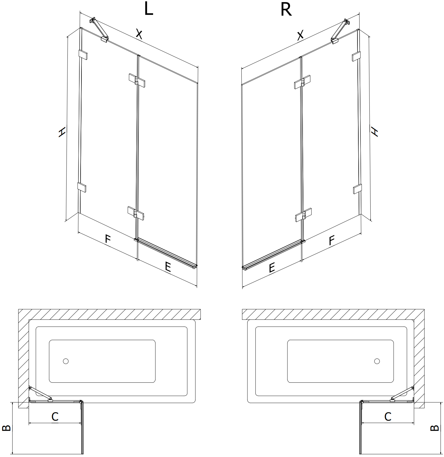 Két szárnyból készült paraván, amely összecsukható. Ez a megoldás több helyet takarít meg a fürdőszobában, és lehetővé teszi a fennmaradó tér szabad használatát, amikor nem használjuk a fürdőrészt.