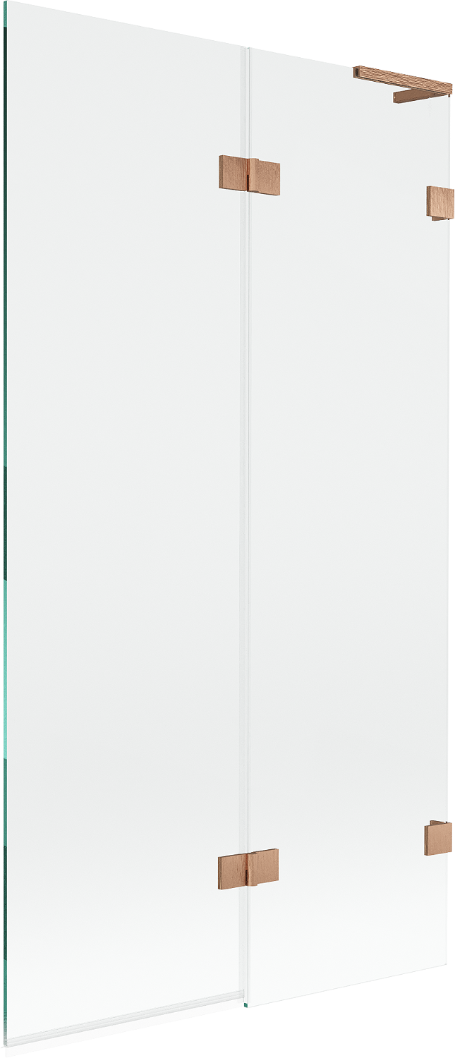 Mexen Lunar L fürdőkád paraván, kétszárnyú, jobb oldali, 100 x 150 cm, átlátszó, csiszolt réz - 897L-100-100-65-00-P
