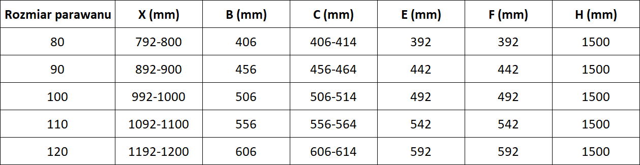 Két szárnyból készült paraván, amely összecsukható. Ez a megoldás több helyet takarít meg a fürdőszobában, és lehetővé teszi a fennmaradó tér szabad használatát, amikor nem használjuk a fürdőrészt.