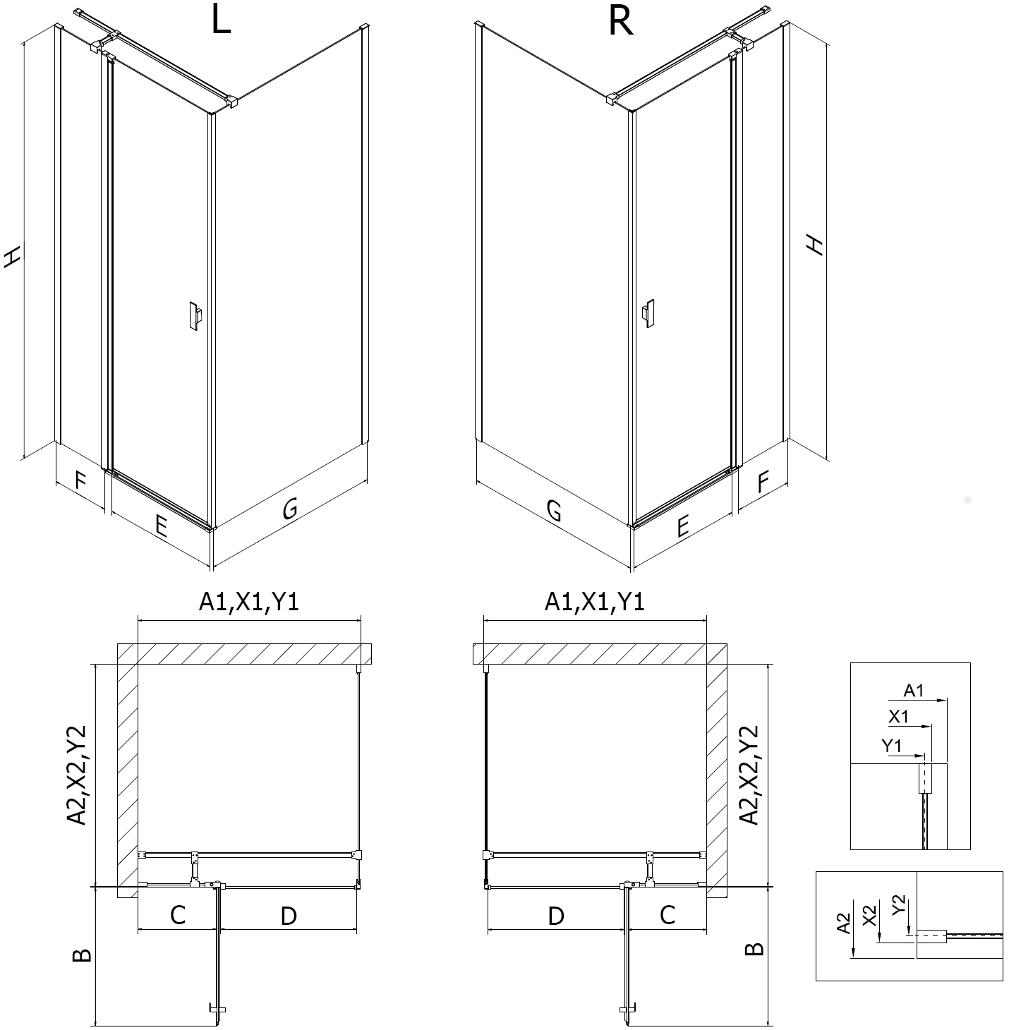 A zuhanykabinok, ajtók és válaszfalak alapesetben meghatározott méretű zuhanytálcákra történő szerelésre alkalmasak. Ezek a méretek szerepelnek a termék nevében vagy leírásában. Fontos azonban tudni, hogy az elemek tényleges méretei kismértékben eltérhetnek a névleges értékektől. Közvetlenül a padlóra történő szerelés esetén javasoljuk a külső méretek és az elemek elrendezésének pontos ellenőrzését a műszaki rajz alapján.
