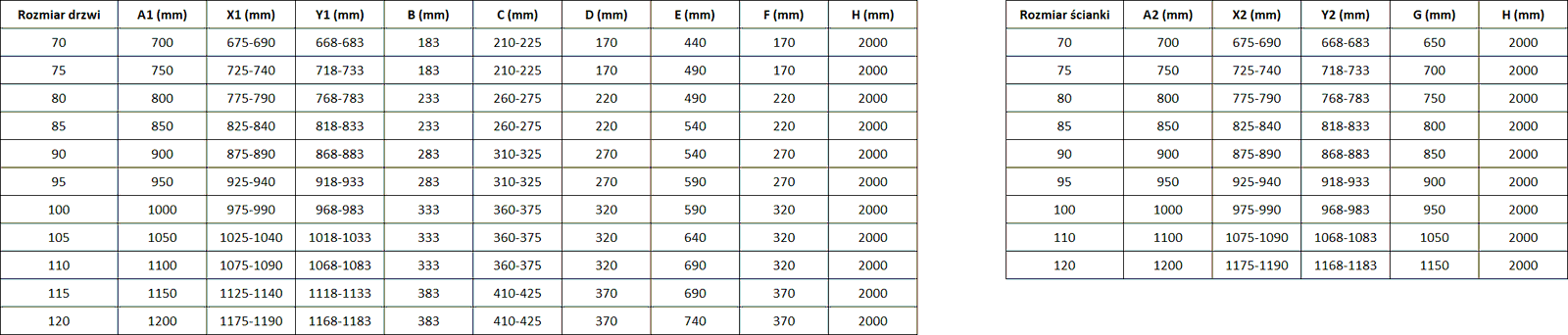 Méret: 75x120 cm (jobb ajtó 75 cm, fal 120 cm)