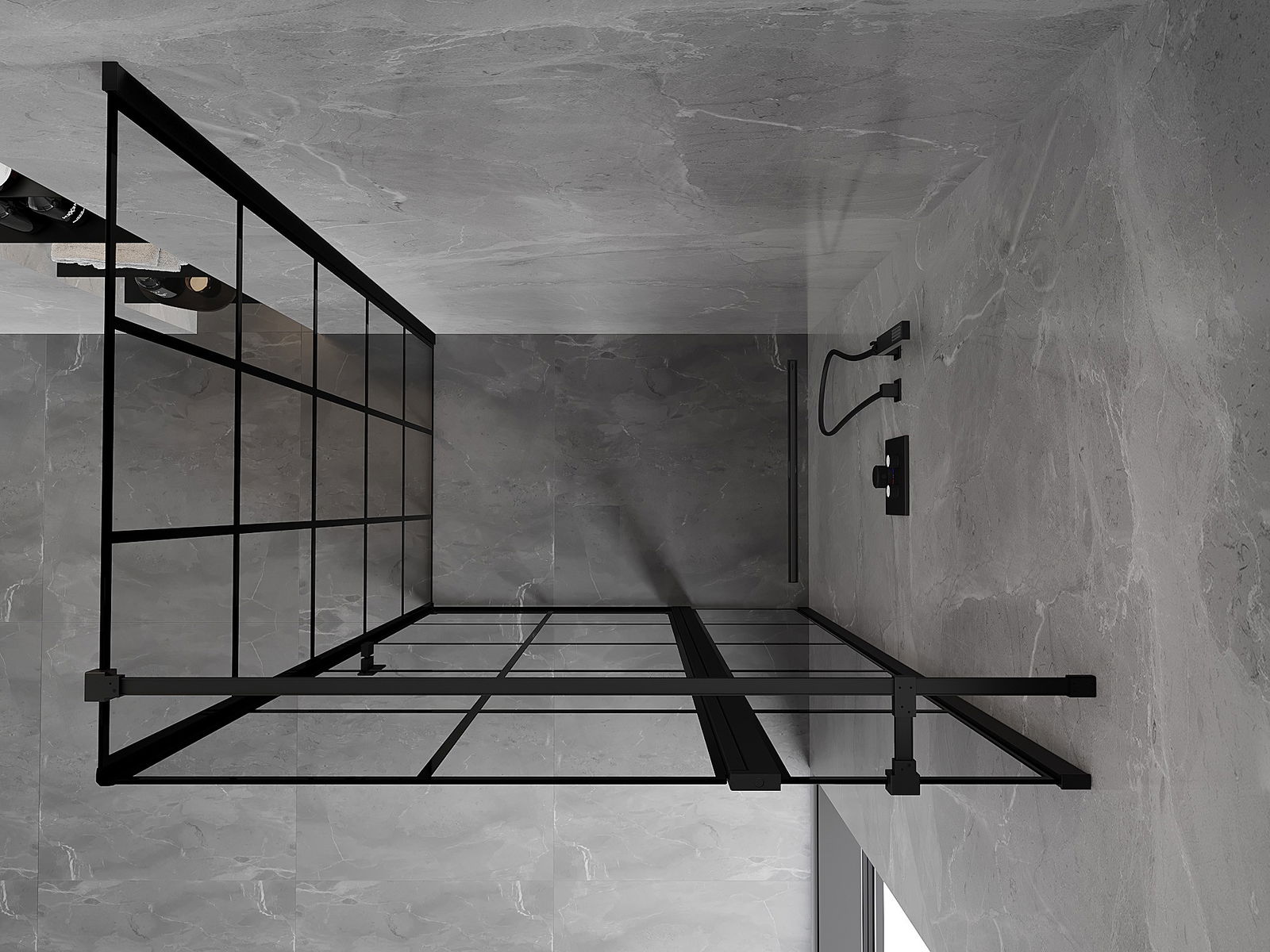 Mexen Mist T jobboldali nyíló zuhanykabin 95 x 80 cm, fekete rácsos, fekete - 8A4T-095-080-70-77-P