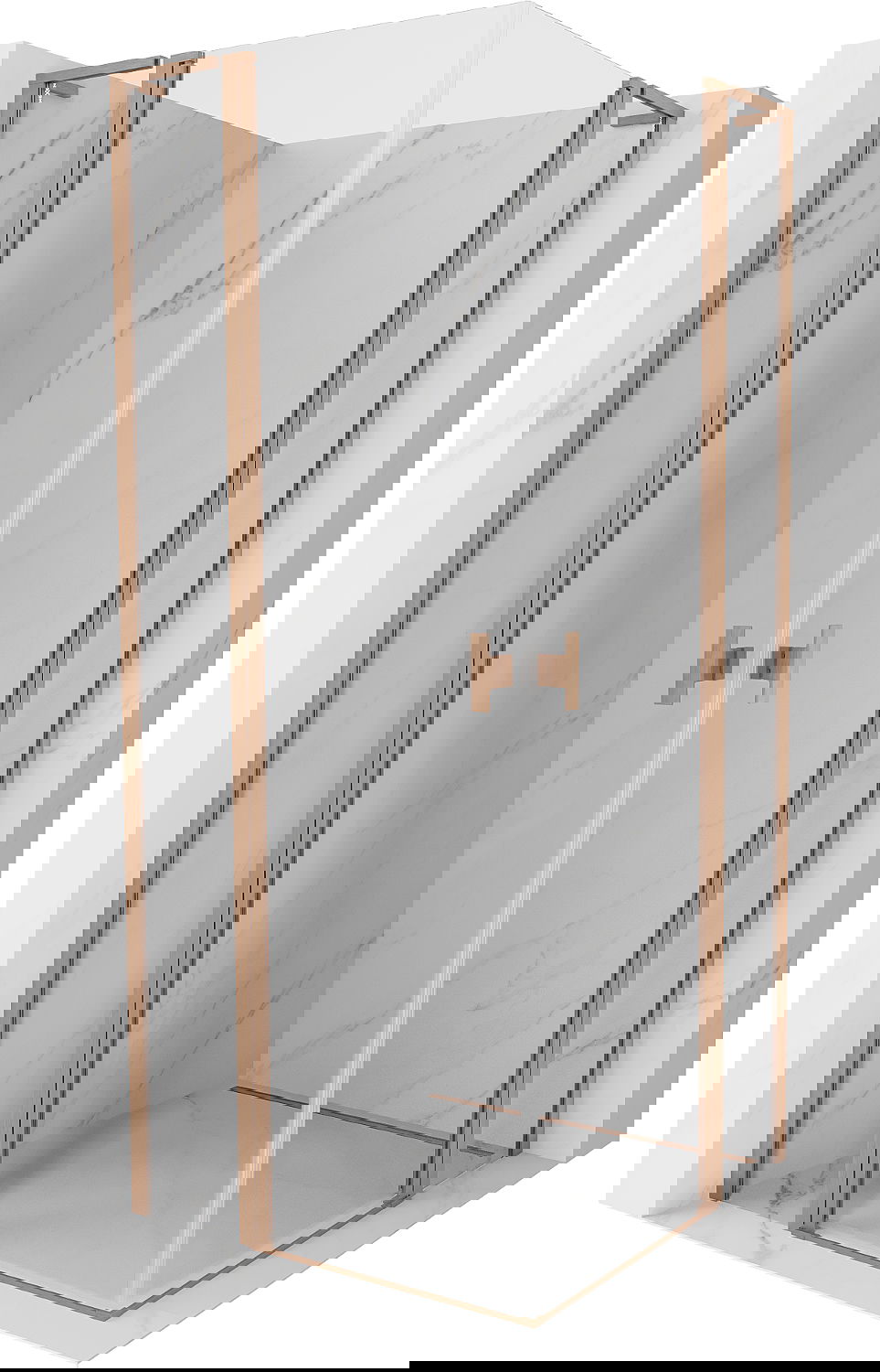 Mexen Mist L Duo nyíló zuhanykabin 90 x 90 cm, átlátszó, kefélt réz - 8A4L-090-090-65-00