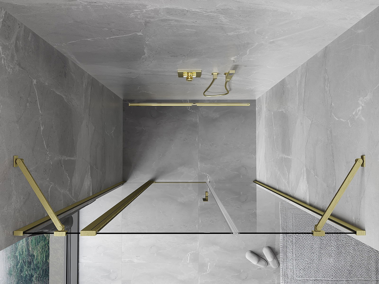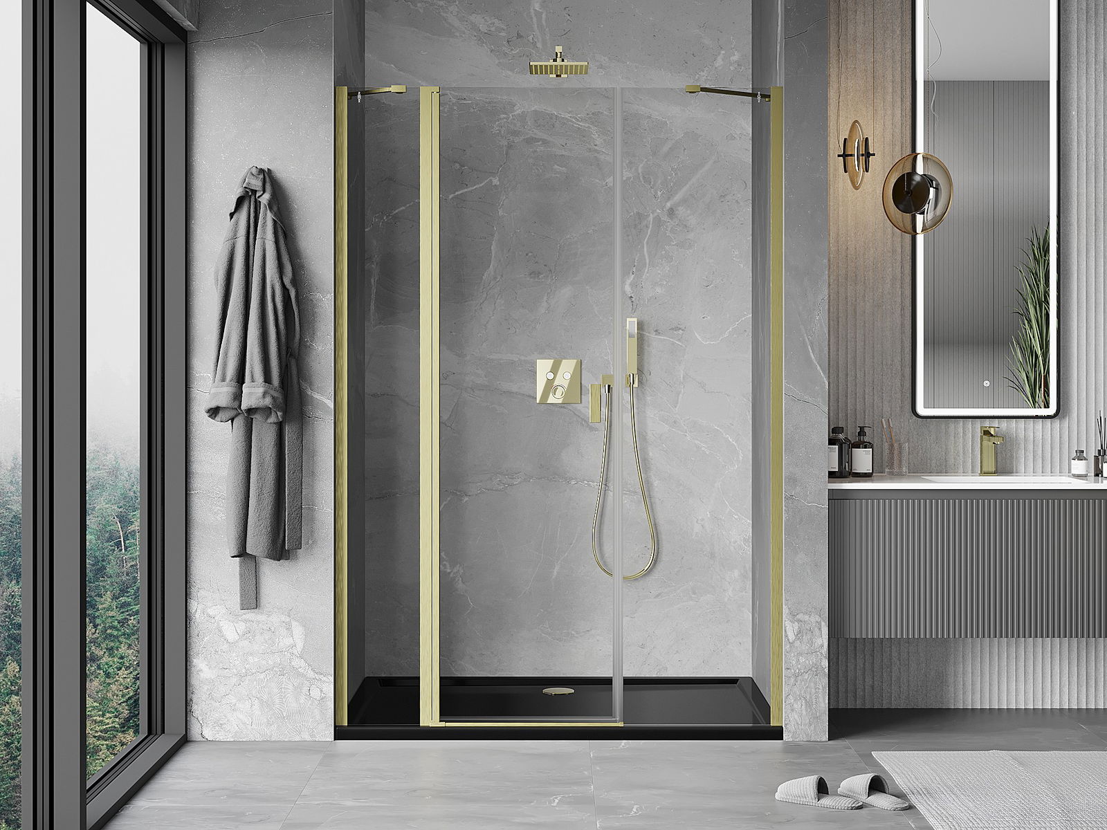 Mexen Mist 145 cm-es nyíló zuhanyajtó, átlátszó, arany kefe - 8A4-145-001-55-00