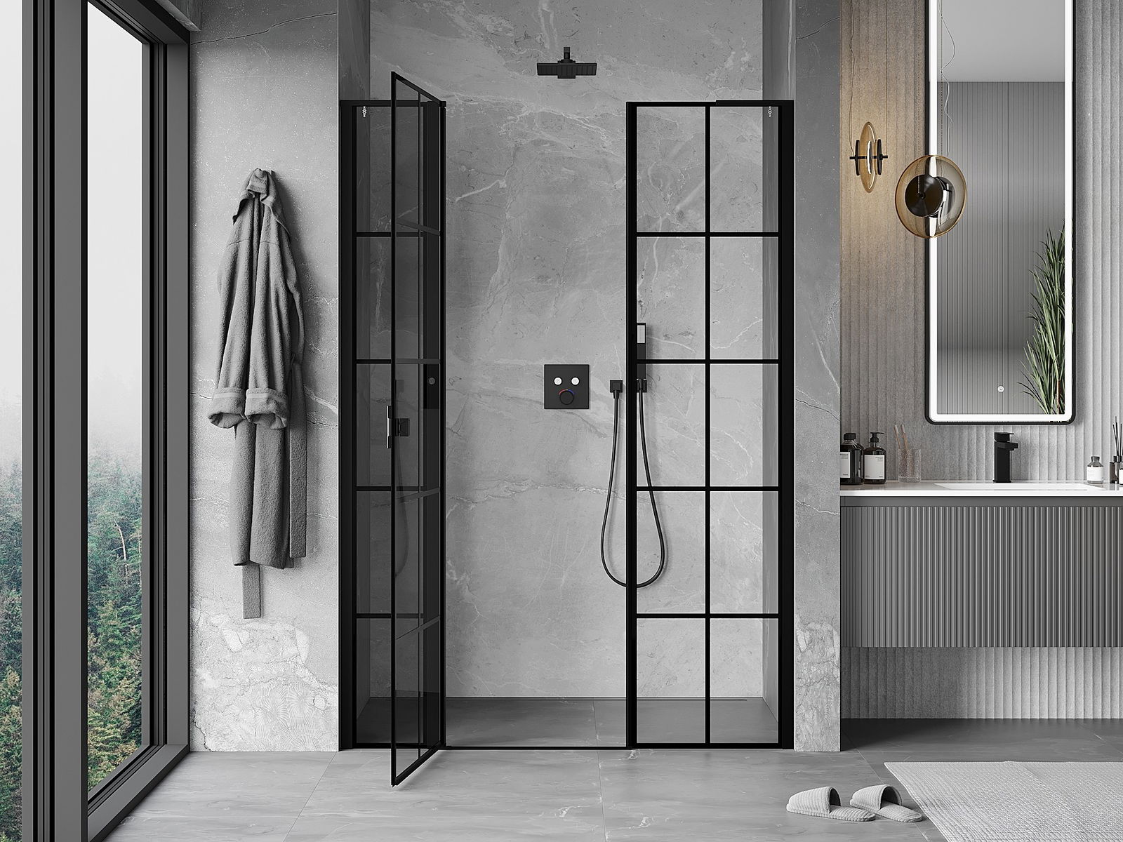 A praktikus és kényelmes fogantyú tartós és ellenálló fémből készült. A divatos forma a profilok színéhez igazított kivitelezéssel együtt modern és stílusos megjelenést kölcsönöz az egésznek, kiemelve minden fürdőszoba esztétikáját.