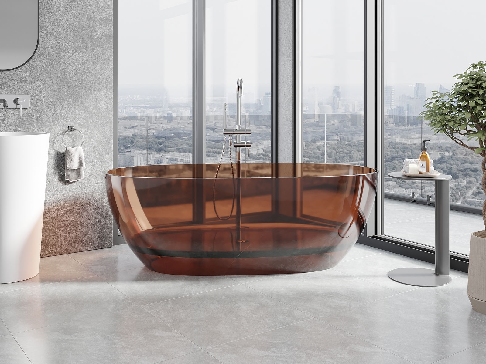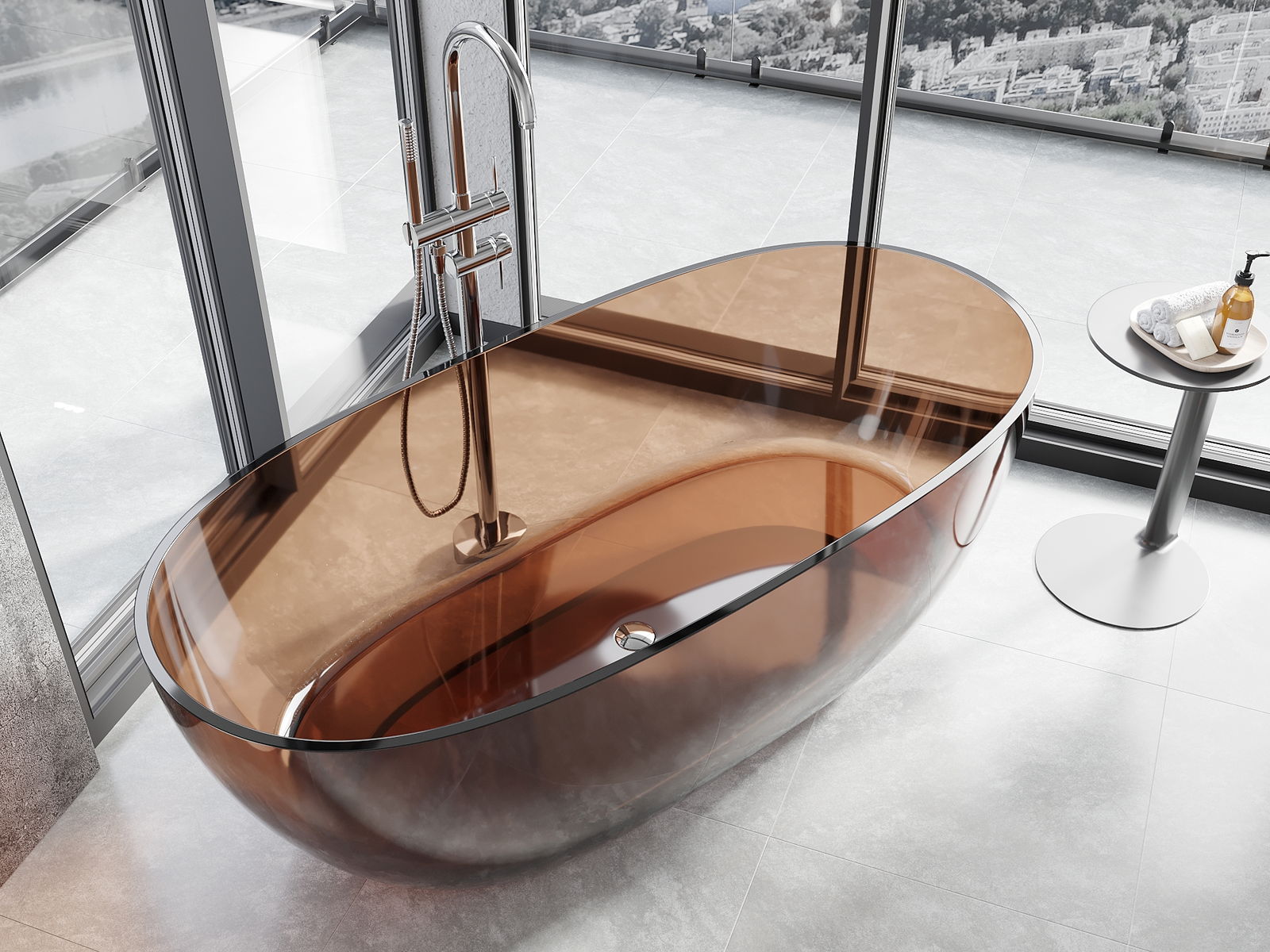 Ez egy modern anyag, amely elegáns megjelenést ötvöz a magas tartóssággal. Ellenáll a mechanikai sérüléseknek, könnyen tisztítható és kellemes tapintású. Az áttetsző forma és a vékony perem könnyedséget és egyedi karaktert kölcsönöz a kádnak, látványos hangsúlyt adva a fürdőszoba kialakításában.