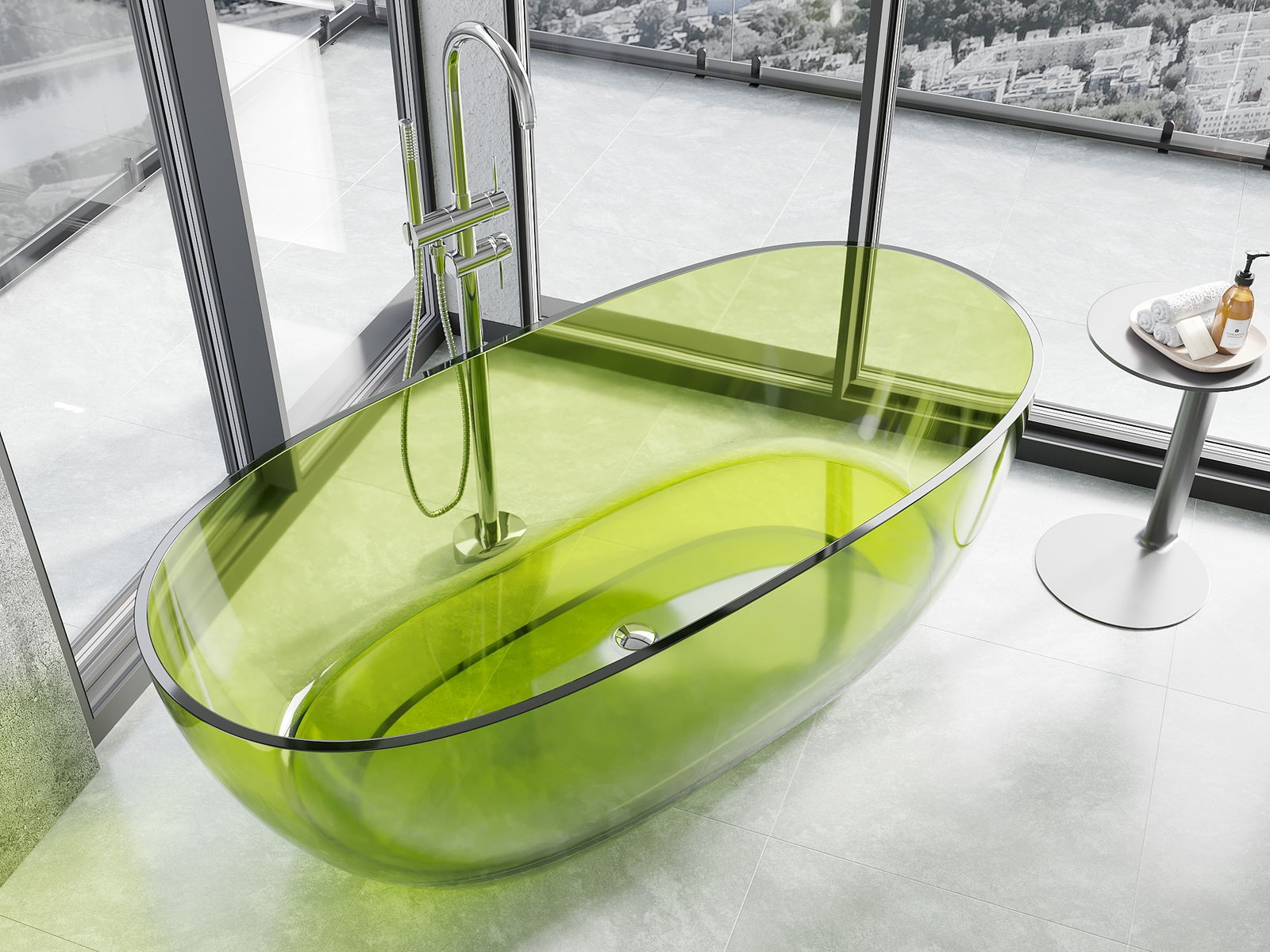 Ez egy modern anyag, amely elegáns megjelenést ötvöz a magas tartóssággal. Ellenáll a mechanikai sérüléseknek, könnyen tisztítható és kellemes tapintású. Az áttetsző forma és a vékony perem könnyedséget és egyedi karaktert kölcsönöz a kádnak, látványos hangsúlyt adva a fürdőszoba kialakításában.