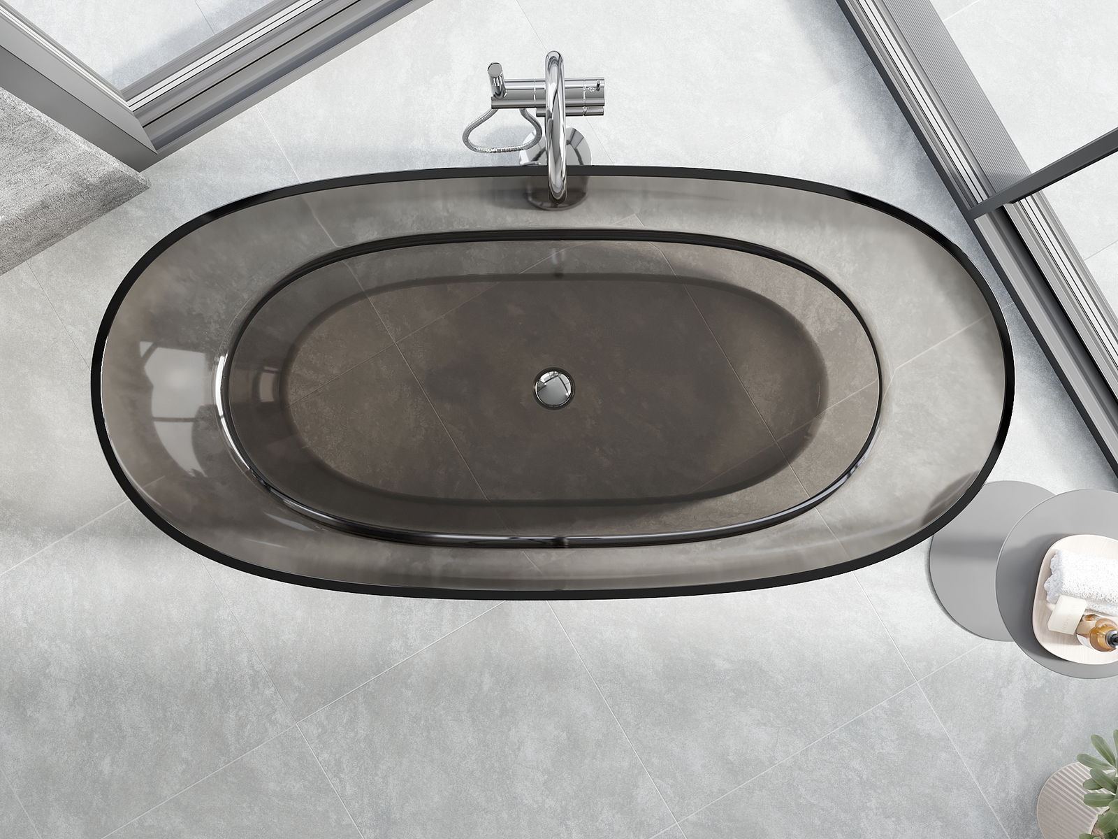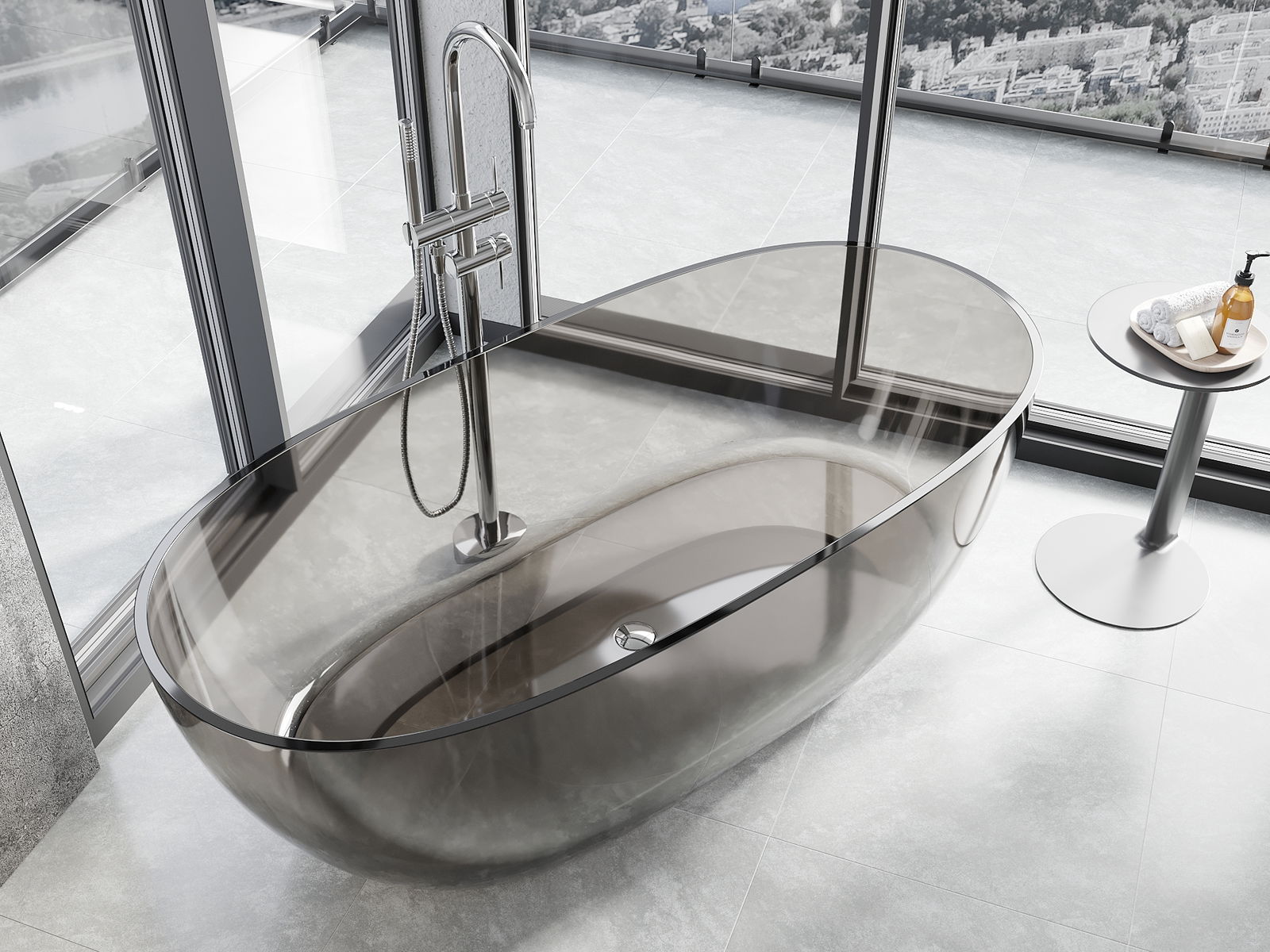 Ez egy modern anyag, amely elegáns megjelenést ötvöz a magas tartóssággal. Ellenáll a mechanikai sérüléseknek, könnyen tisztítható és kellemes tapintású. Az áttetsző forma és a vékony perem könnyedséget és egyedi karaktert kölcsönöz a kádnak, látványos hangsúlyt adva a fürdőszoba kialakításában.
