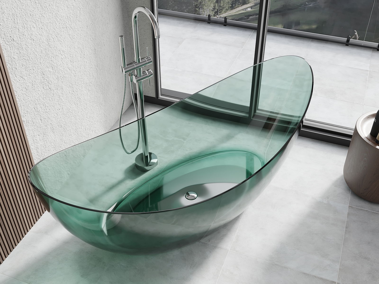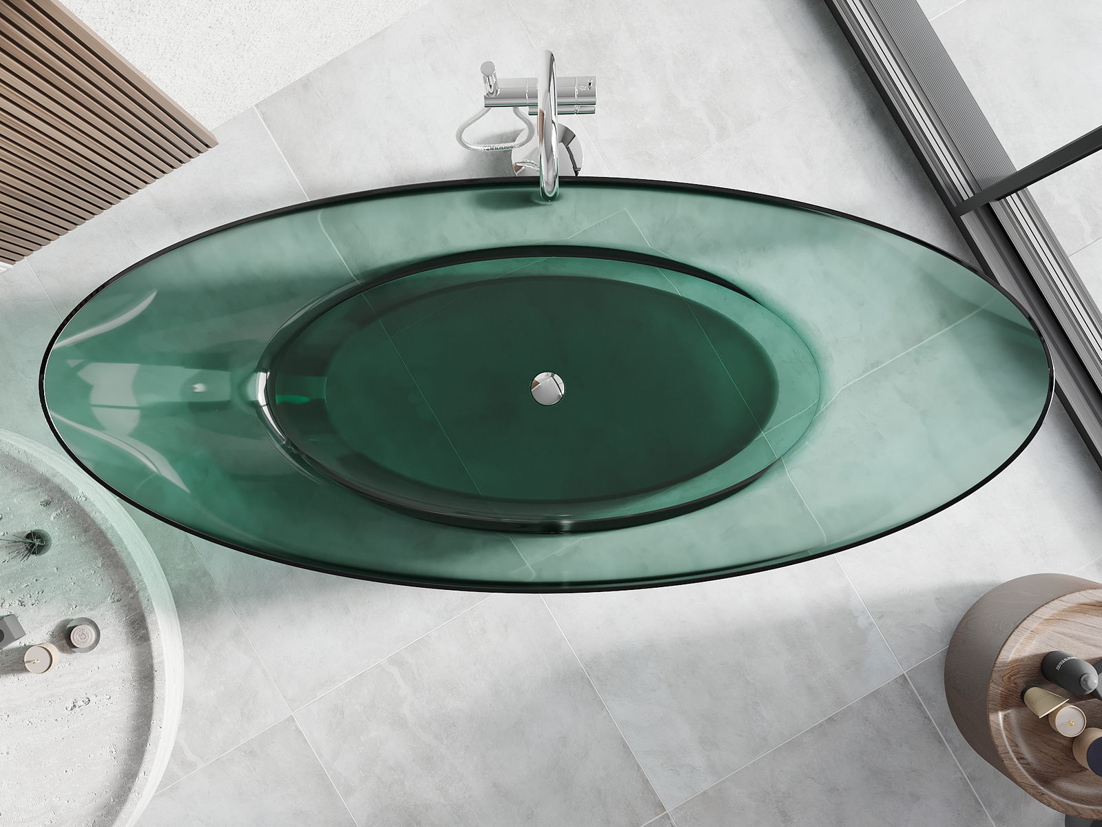 Ez egy modern anyag, amely elegáns megjelenést ötvöz a magas tartóssággal. Ellenáll a mechanikai sérüléseknek, könnyen tisztítható és kellemes tapintású. Az áttetsző forma és a vékony perem könnyedséget és egyedi karaktert kölcsönöz a kádnak, látványos hangsúlyt adva a fürdőszoba kialakításában.