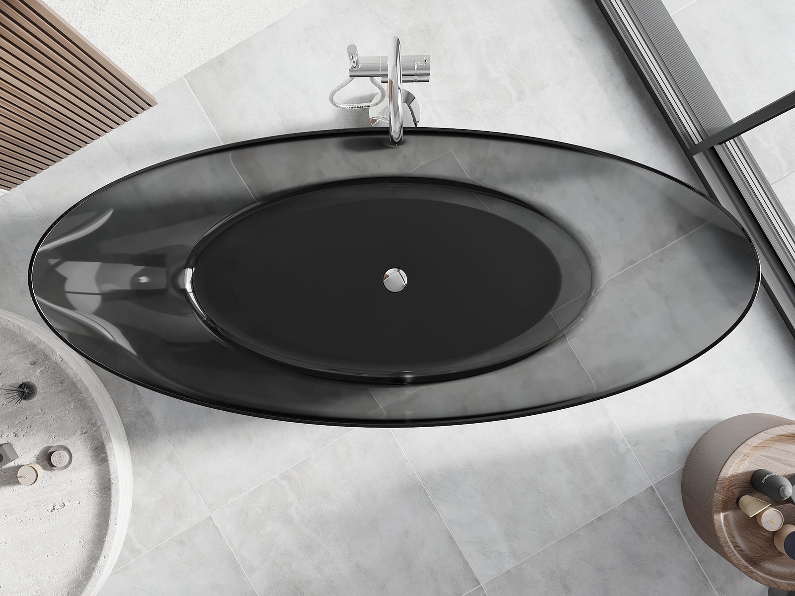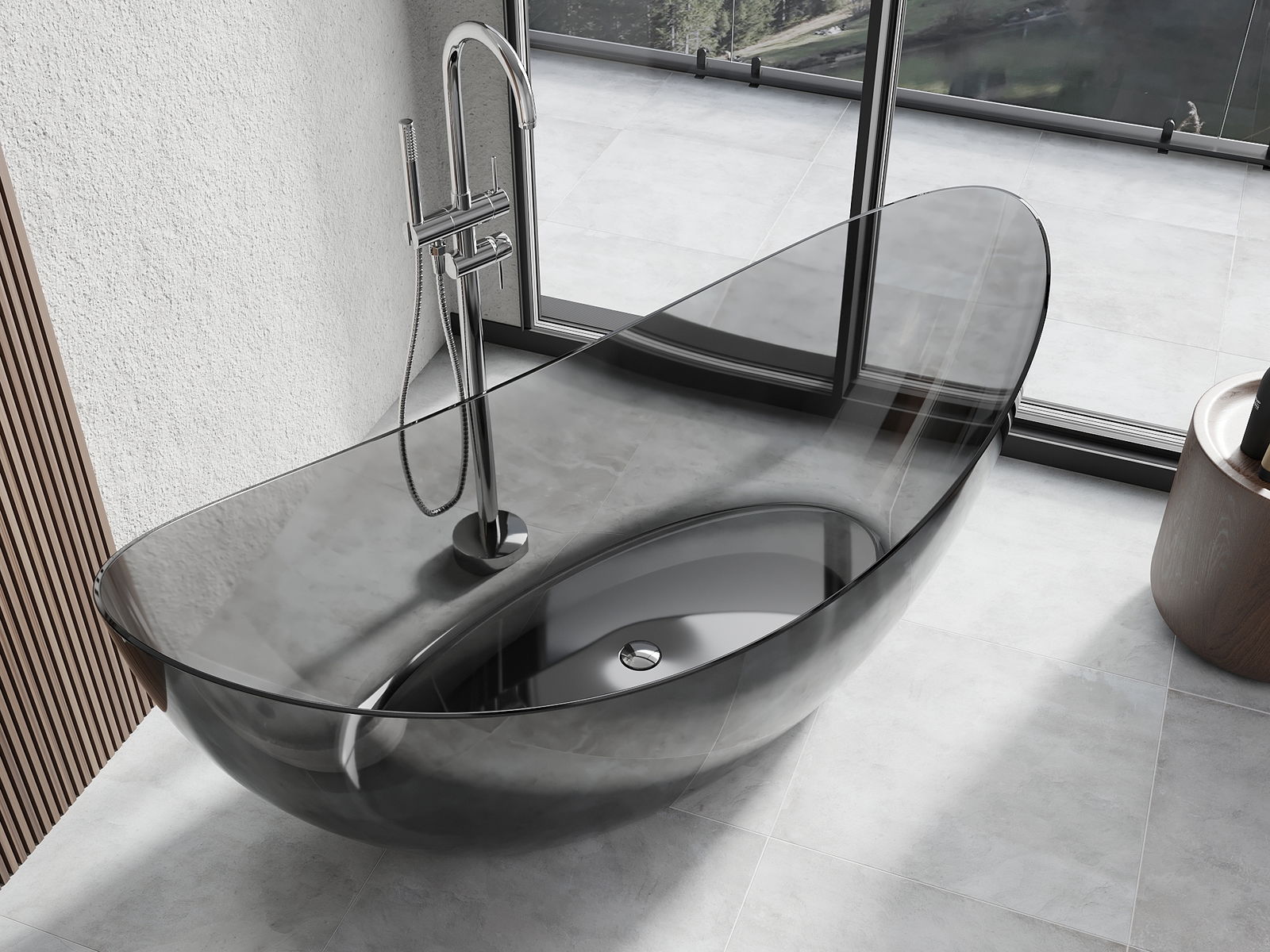 Ez egy modern anyag, amely elegáns megjelenést ötvöz a magas tartóssággal. Ellenáll a mechanikai sérüléseknek, könnyen tisztítható és kellemes tapintású. Az áttetsző forma és a vékony perem könnyedséget és egyedi karaktert kölcsönöz a kádnak, látványos hangsúlyt adva a fürdőszoba kialakításában.