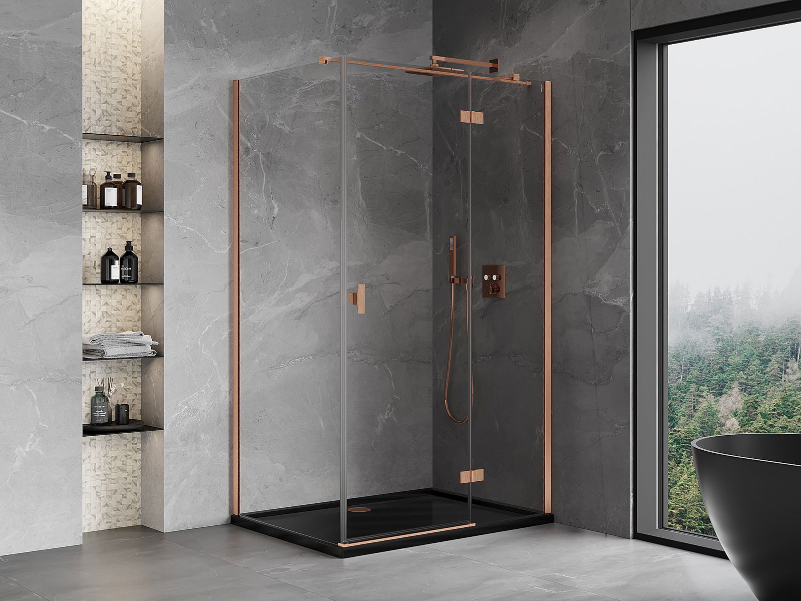 Mexen Mist-H T jobbos zuhanyfülke 100 x 95 cm, áttetsző, kefe hatású réz - 8A5T-100-095-65-00-P