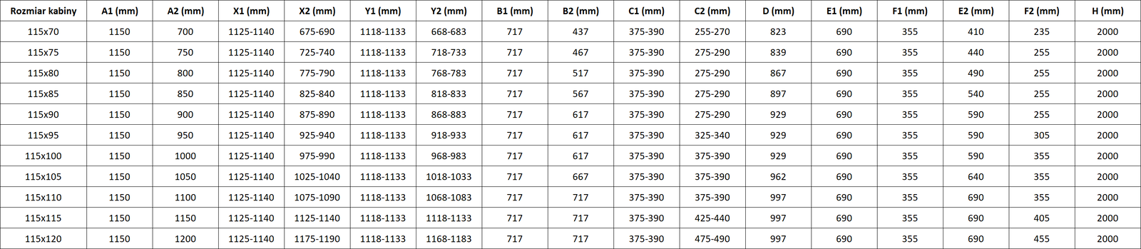 A zuhanykabinok, ajtók és válaszfalak alapesetben meghatározott méretű zuhanytálcákra történő szerelésre alkalmasak. Ezek a méretek szerepelnek a termék nevében vagy leírásában. Fontos azonban tudni, hogy az elemek tényleges méretei kismértékben eltérhetnek a névleges értékektől. Közvetlenül a padlóra történő szerelés esetén javasoljuk a külső méretek és az elemek elrendezésének pontos ellenőrzését a műszaki rajz alapján.