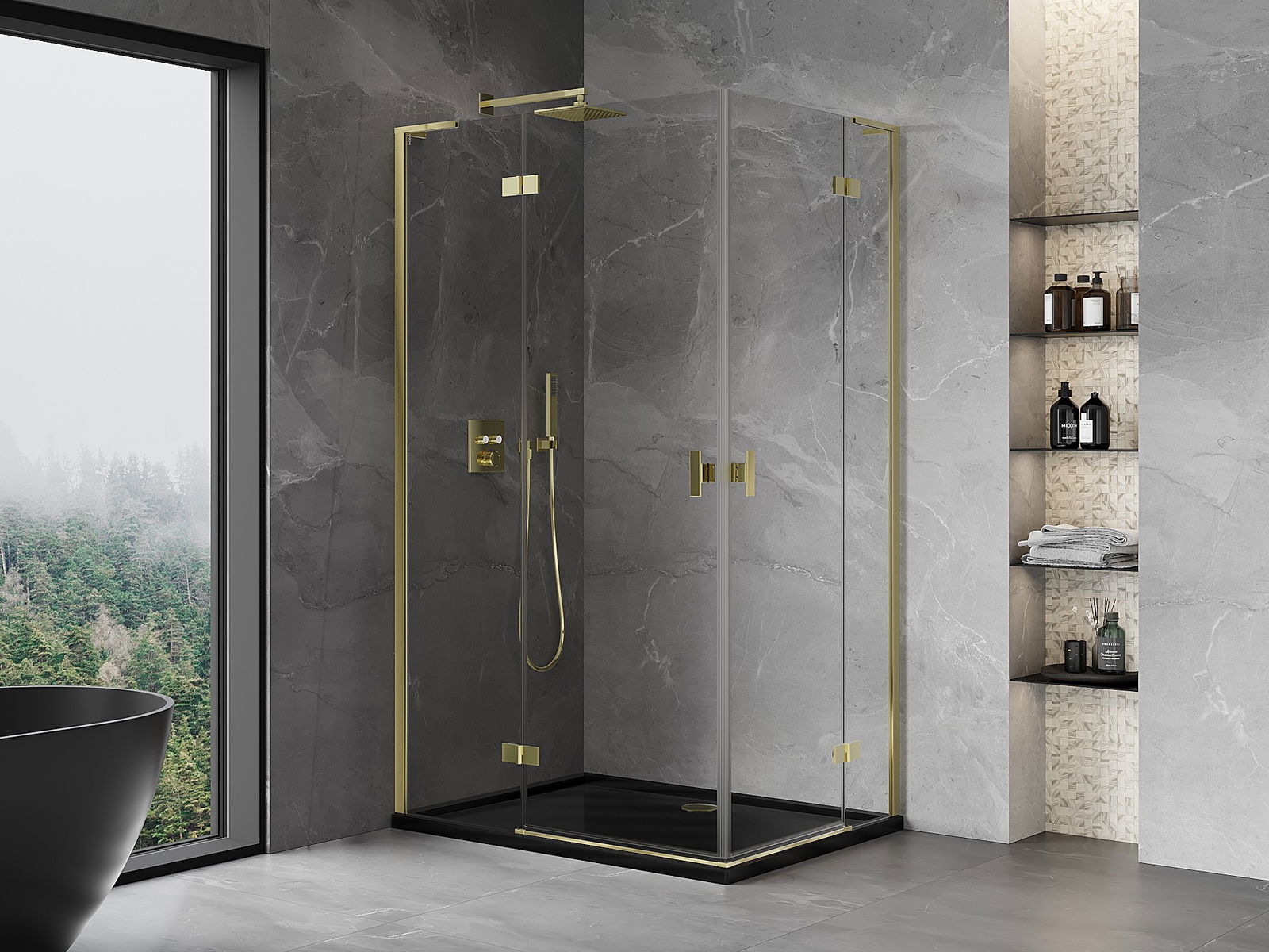 Mexen Mist-H L Duo zuhanykabin balra nyíló 90 x 70 cm, átlátszó, arany - 8A5L-090L-070P-50-00