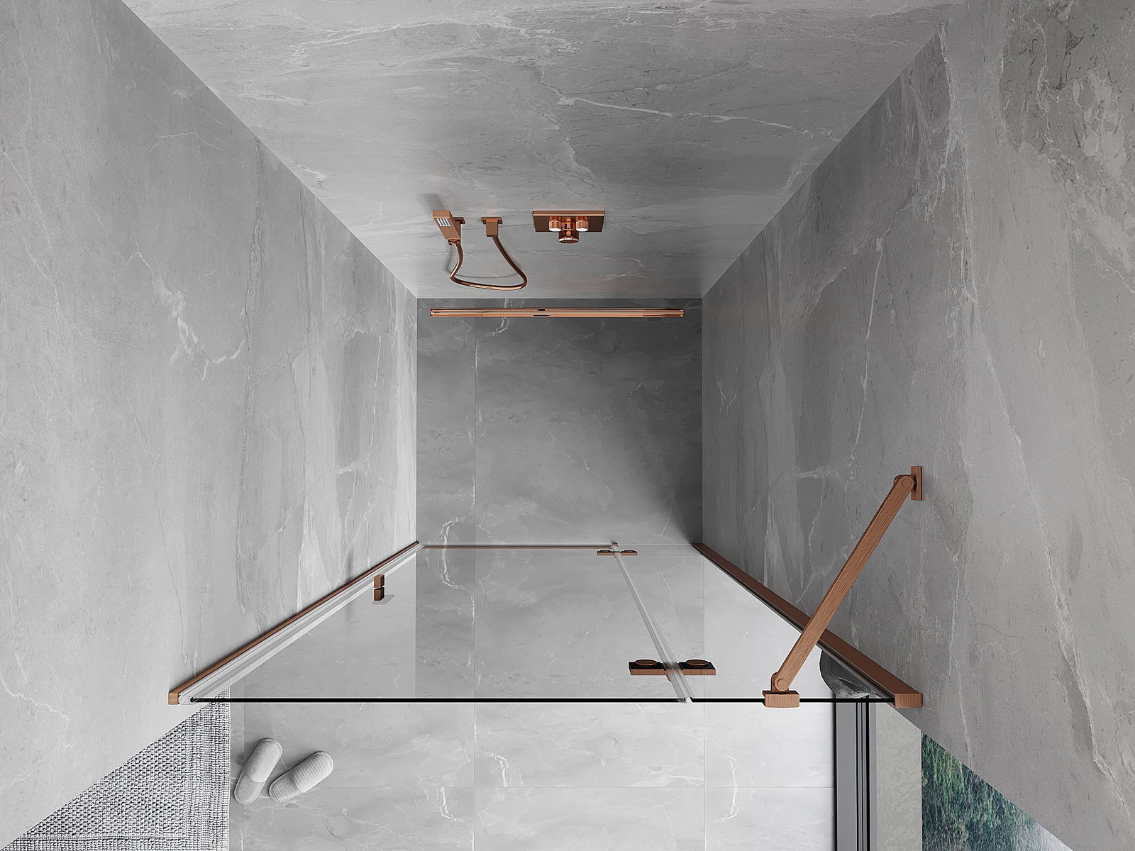 Mexen Mist-H jobbos nyíló zuhanyajtó 80 cm, átlátszó, csiszolt réz - 8A5-080-000-65-00-P