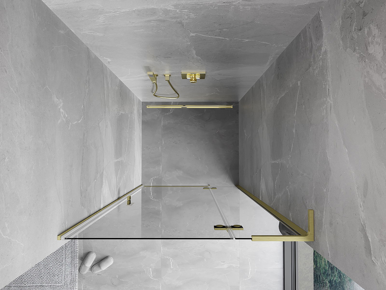 Mexen Mist-H L jobbra nyíló zuhanyajtó 85 cm, átlátszó, arany szálcsiszolt - 8A5L-085-000-55-00-P