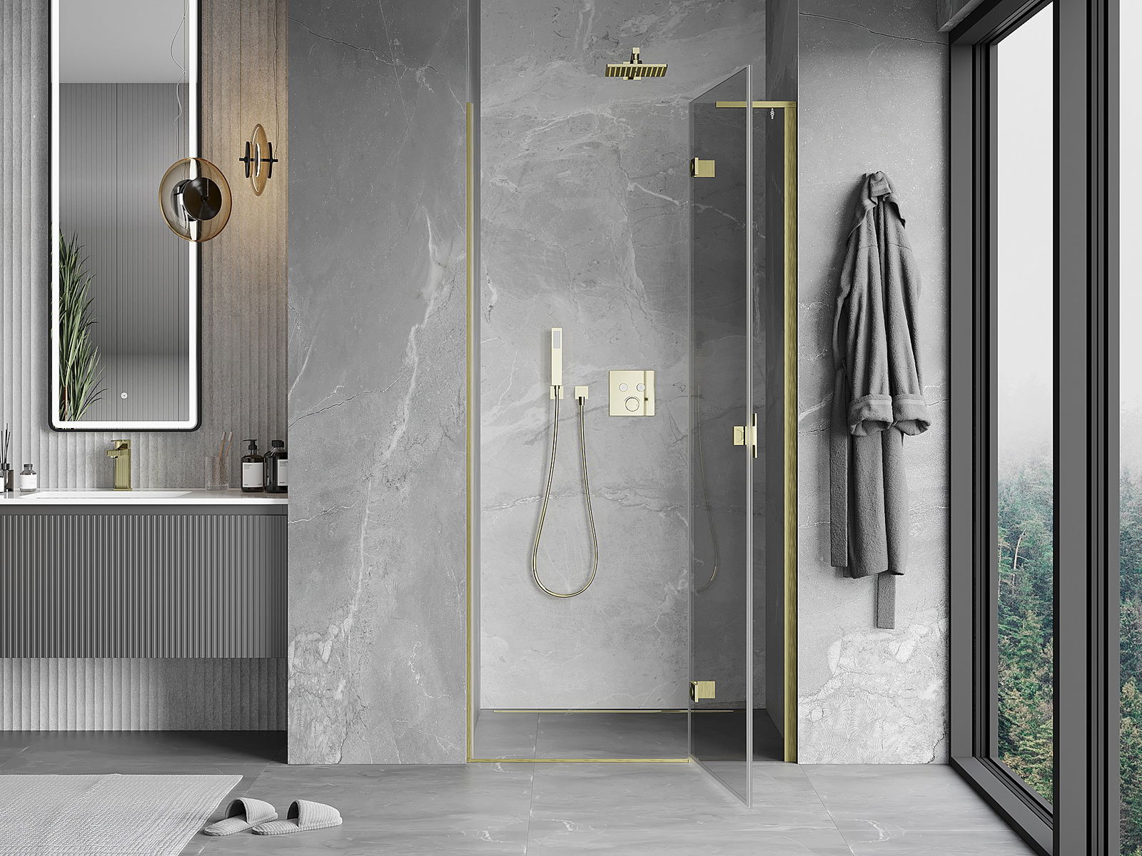 Mexen Mist-H L jobbos zuhanyajtó 115 cm, áttetsző, arany kefe - 8A5L-115-000-55-00-P