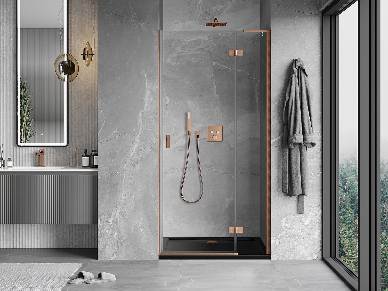 Mexen Mist-H L jobbos nyíló zuhanyajtó 80 cm, átlátszó, csiszolt réz - 8A5L-080-000-65-00-P