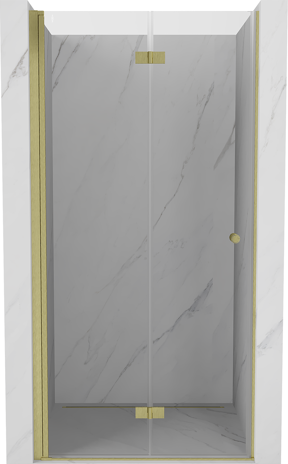 Mexen Mist-F összecsukható bal oldali zuhanyajtó 75 cm, átlátszó, arany matt - 8A6-075-000-55-00-L