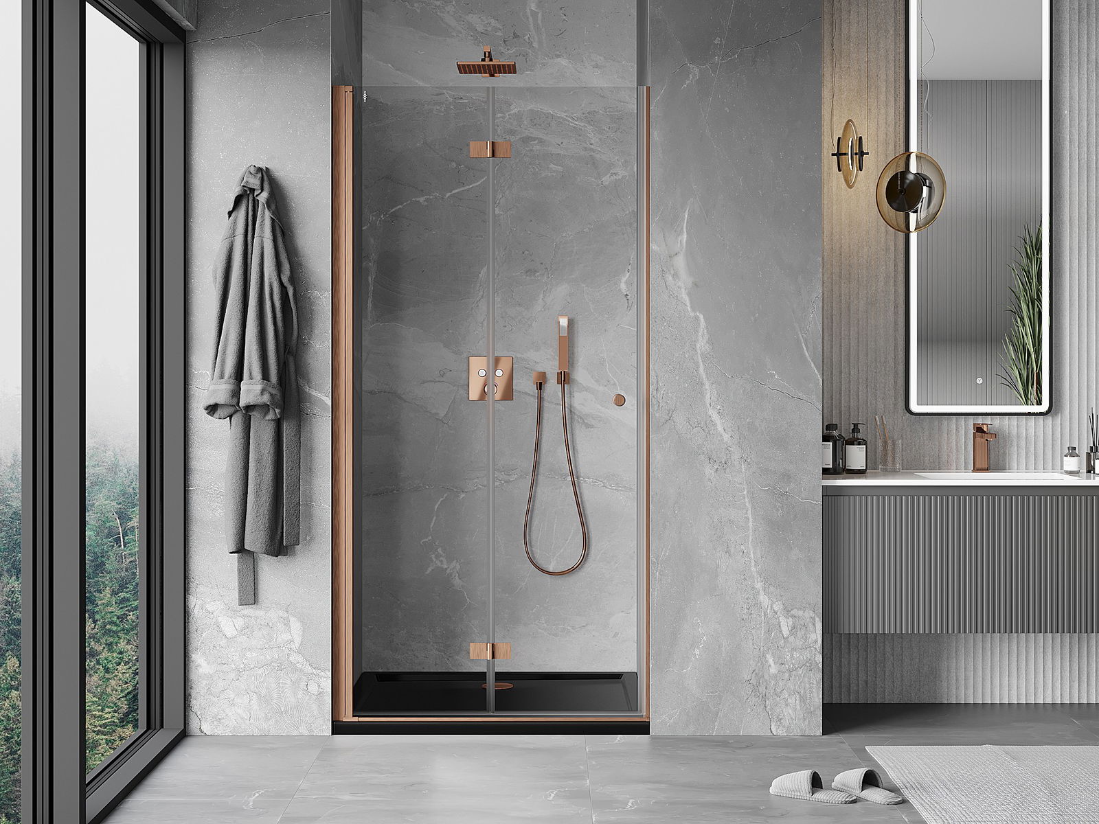 Mexen Mist-F összecsukható zuhanyajtó bal 60 cm, átlátszó, kefe árnyalatú réz - 8A6-060-000-65-00-L