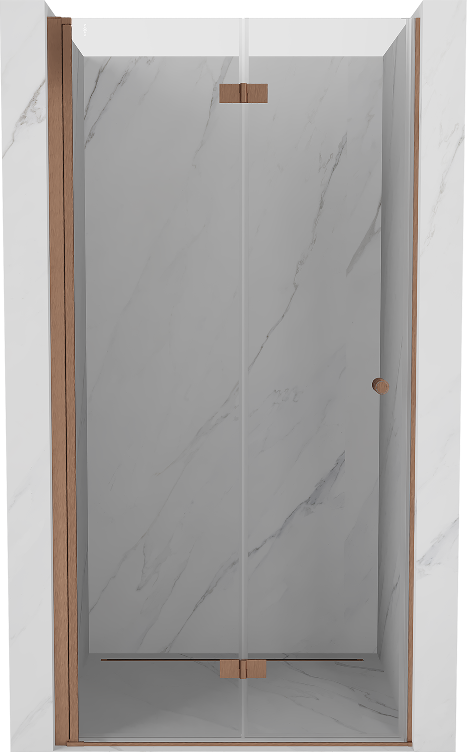 Mexen Mist-F összehajtható zuhanyajtó bal 100 cm, átlátszó, kefélt réz - 8A6-100-000-65-00-L