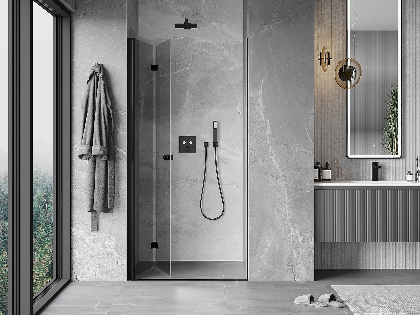 Mexen Mist-F összecsukható bal oldali zuhanyajtó 105 cm, átlátszó, fekete - 8A6-105-000-70-00-L