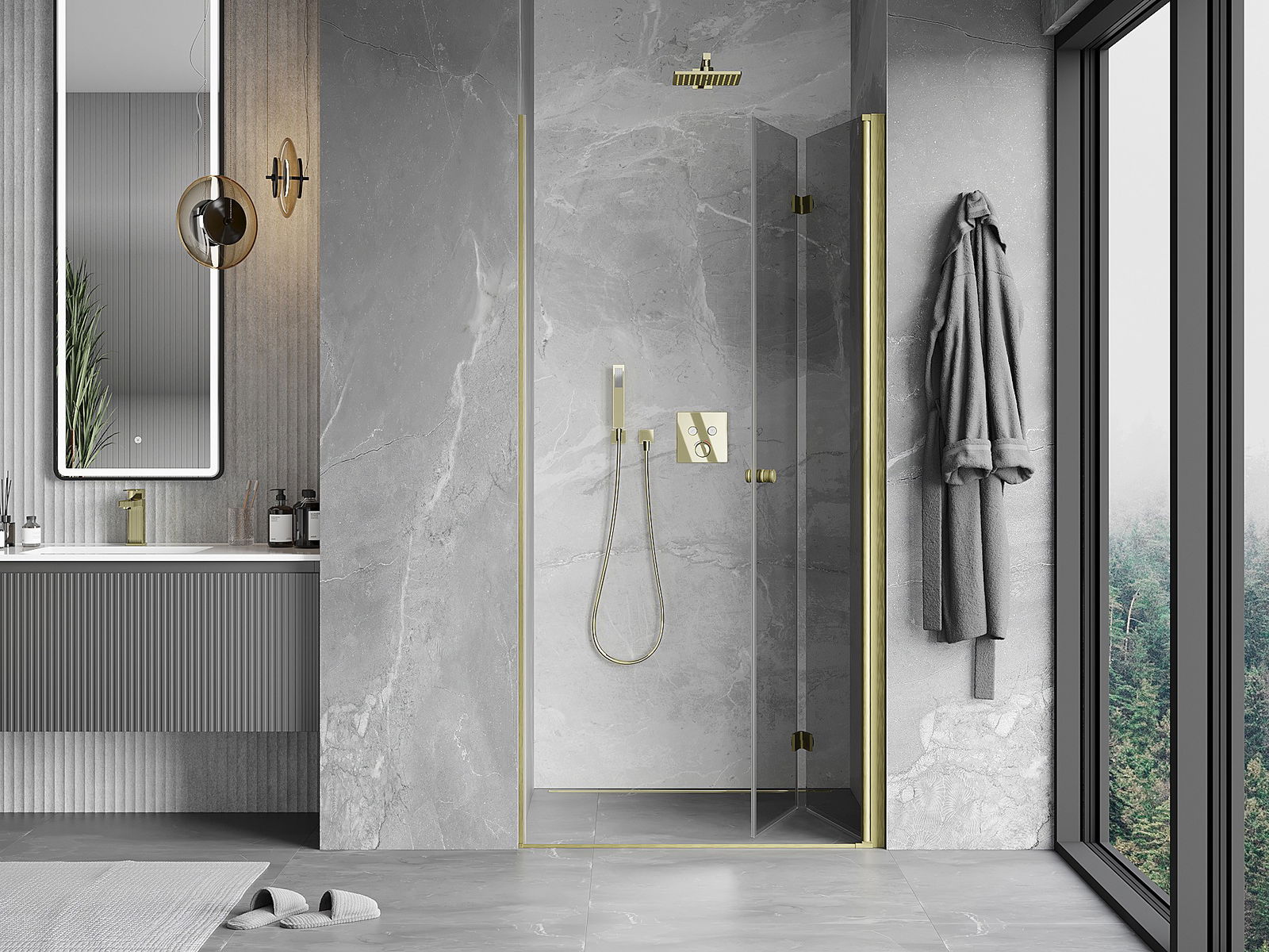 Mexen Mist-F összecsukható zuhanyajtó jobbos 80 cm, átlátszó, arany szálcsiszolt - 8A6-080-000-55-00-P