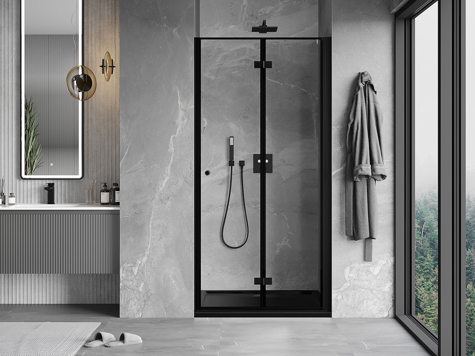 Mexen Mist-F összecsukható zuhanyajtó jobb 80 cm, fekete keret, fekete - 8A6-080-000-70-70-P