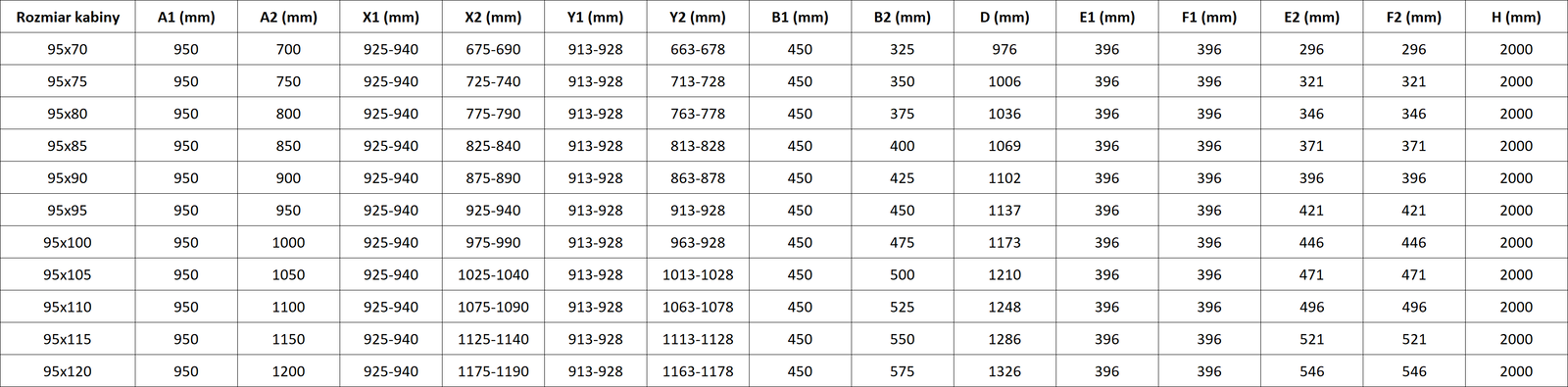 Méret: 95x100 cm (bal ajtó 95 cm, jobb ajtó 100 cm)