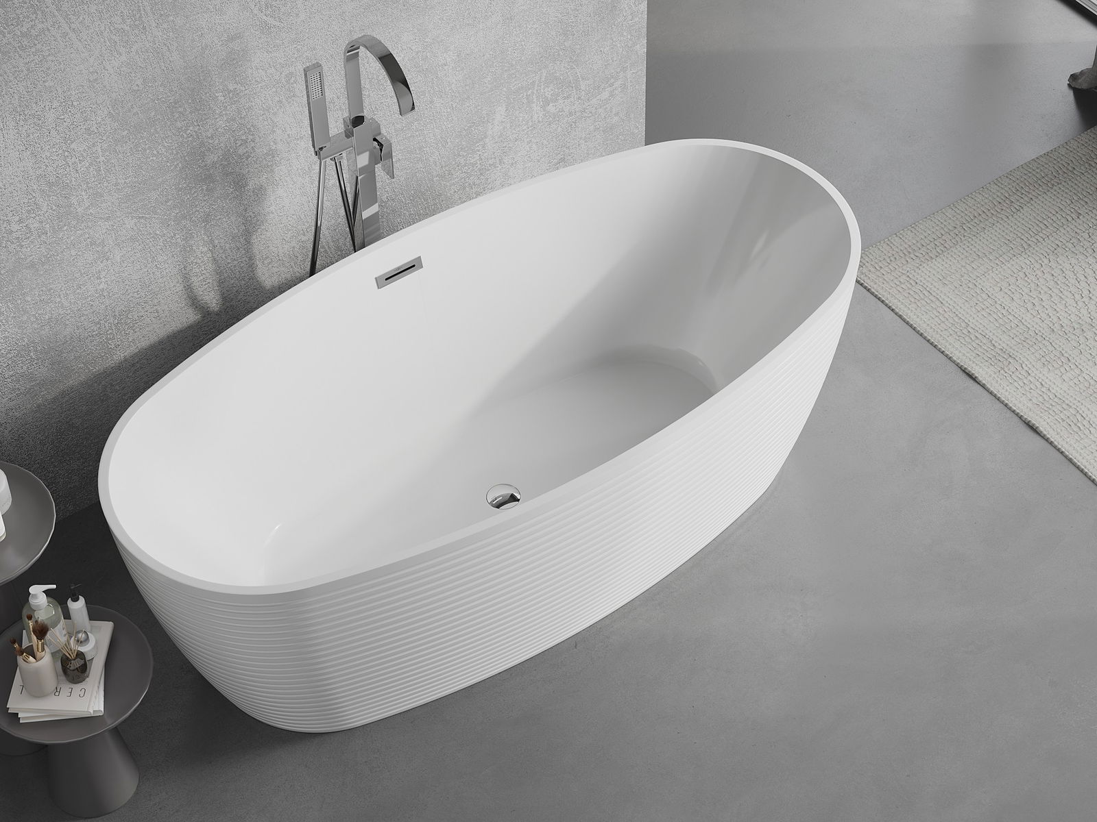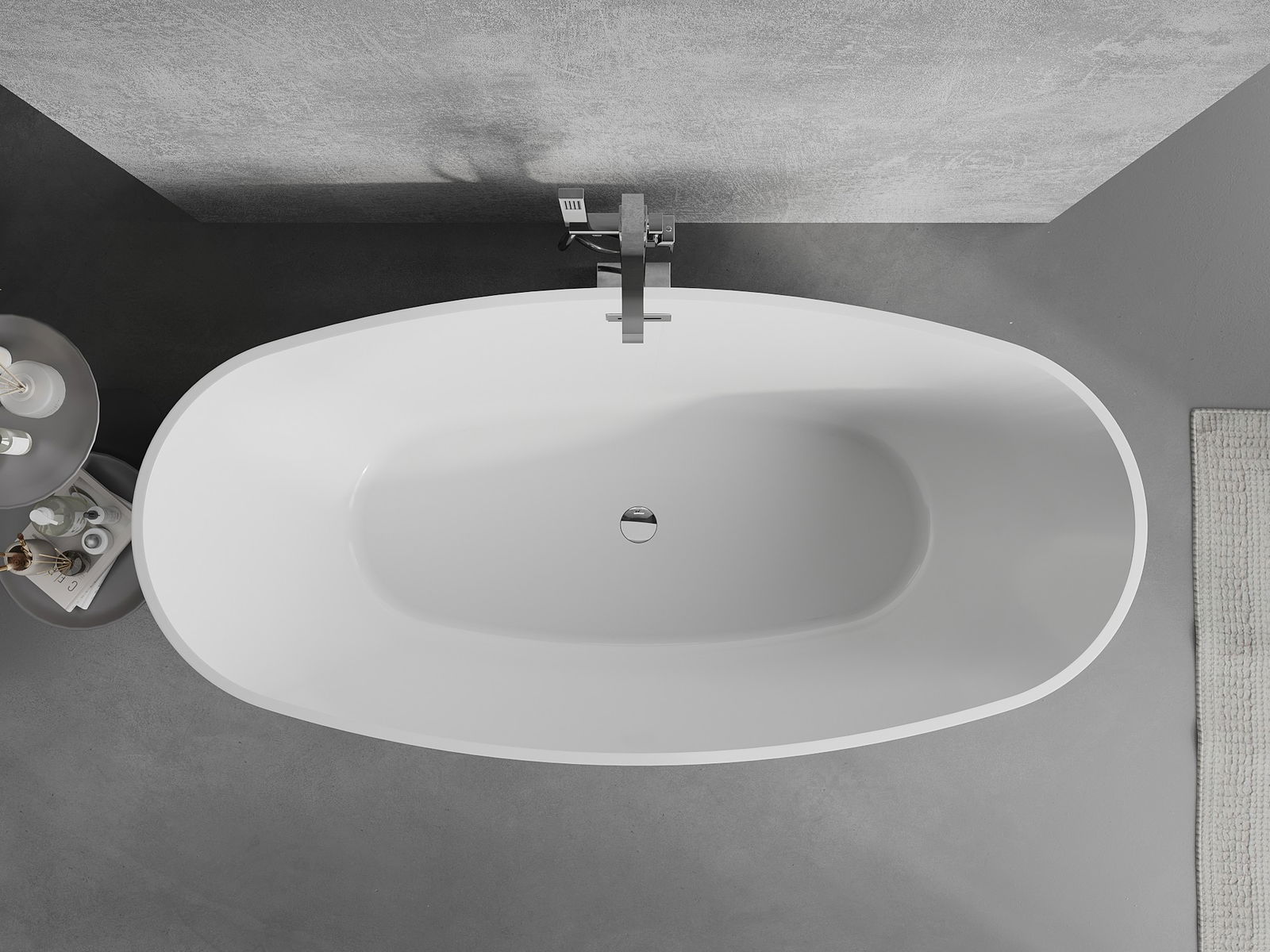 Ez egy modern anyag, amely elegáns megjelenést ötvöz a magas tartóssággal. Ellenáll a mechanikai sérüléseknek, könnyen tisztítható és kellemes tapintású. Az áttetsző forma és a vékony perem könnyedséget és egyedi karaktert kölcsönöz a kádnak, látványos hangsúlyt adva a fürdőszoba kialakításában.