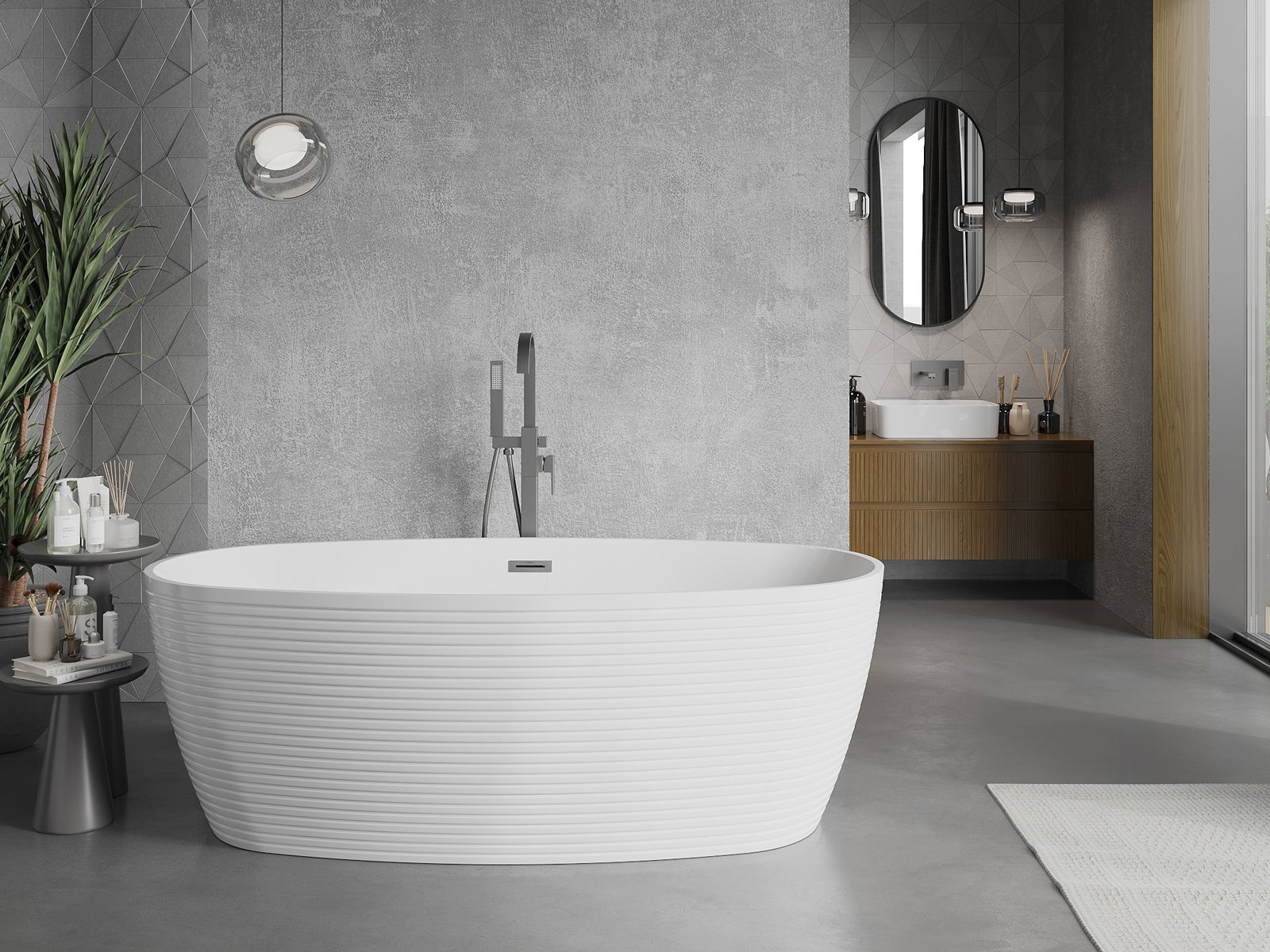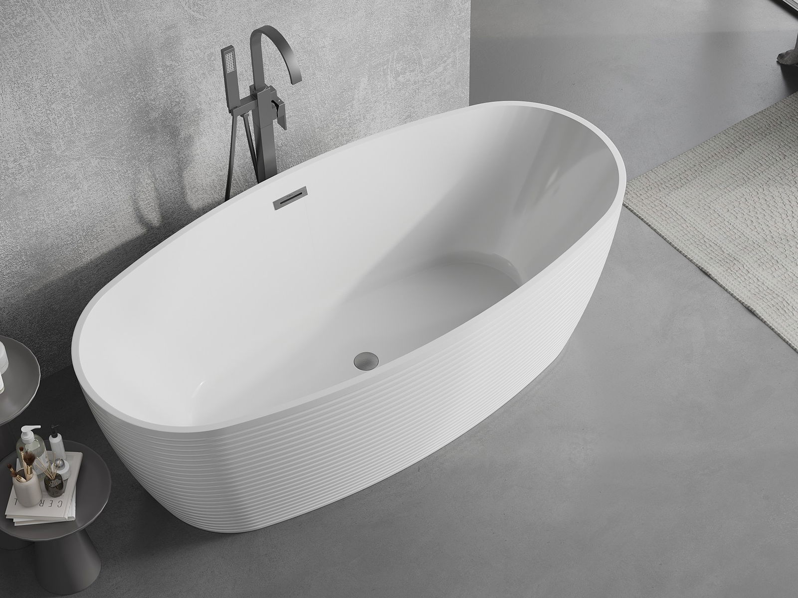Ez egy modern anyag, amely elegáns megjelenést ötvöz a magas tartóssággal. Ellenáll a mechanikai sérüléseknek, könnyen tisztítható és kellemes tapintású. Az áttetsző forma és a vékony perem könnyedséget és egyedi karaktert kölcsönöz a kádnak, látványos hangsúlyt adva a fürdőszoba kialakításában.