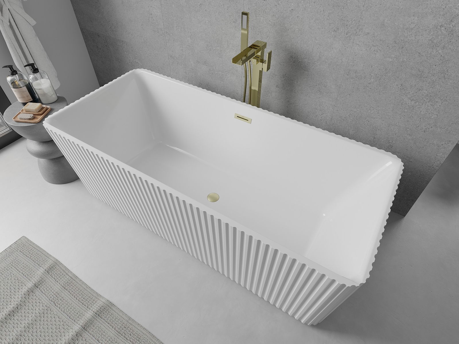 Mexen Nila szabadon álló bordázott kád 170 x 75 cm, fehér, arany kefélt túlfolyó - 52841708000-55