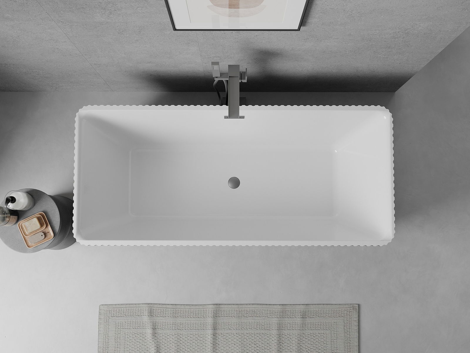 Ez egy modern anyag, amely elegáns megjelenést ötvöz a magas tartóssággal. Ellenáll a mechanikai sérüléseknek, könnyen tisztítható és kellemes tapintású. Az áttetsző forma és a vékony perem könnyedséget és egyedi karaktert kölcsönöz a kádnak, látványos hangsúlyt adva a fürdőszoba kialakításában.