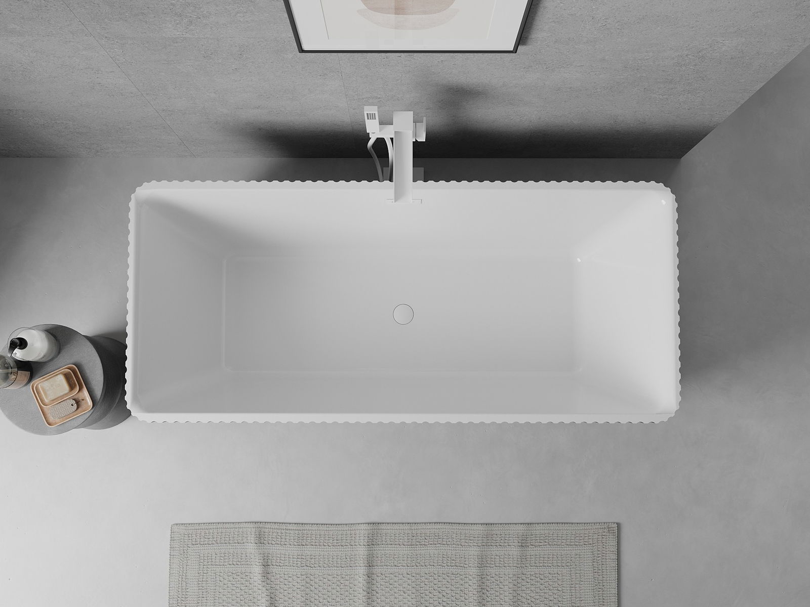 Ez egy modern anyag, amely elegáns megjelenést ötvöz a magas tartóssággal. Ellenáll a mechanikai sérüléseknek, könnyen tisztítható és kellemes tapintású. Az áttetsző forma és a vékony perem könnyedséget és egyedi karaktert kölcsönöz a kádnak, látványos hangsúlyt adva a fürdőszoba kialakításában.