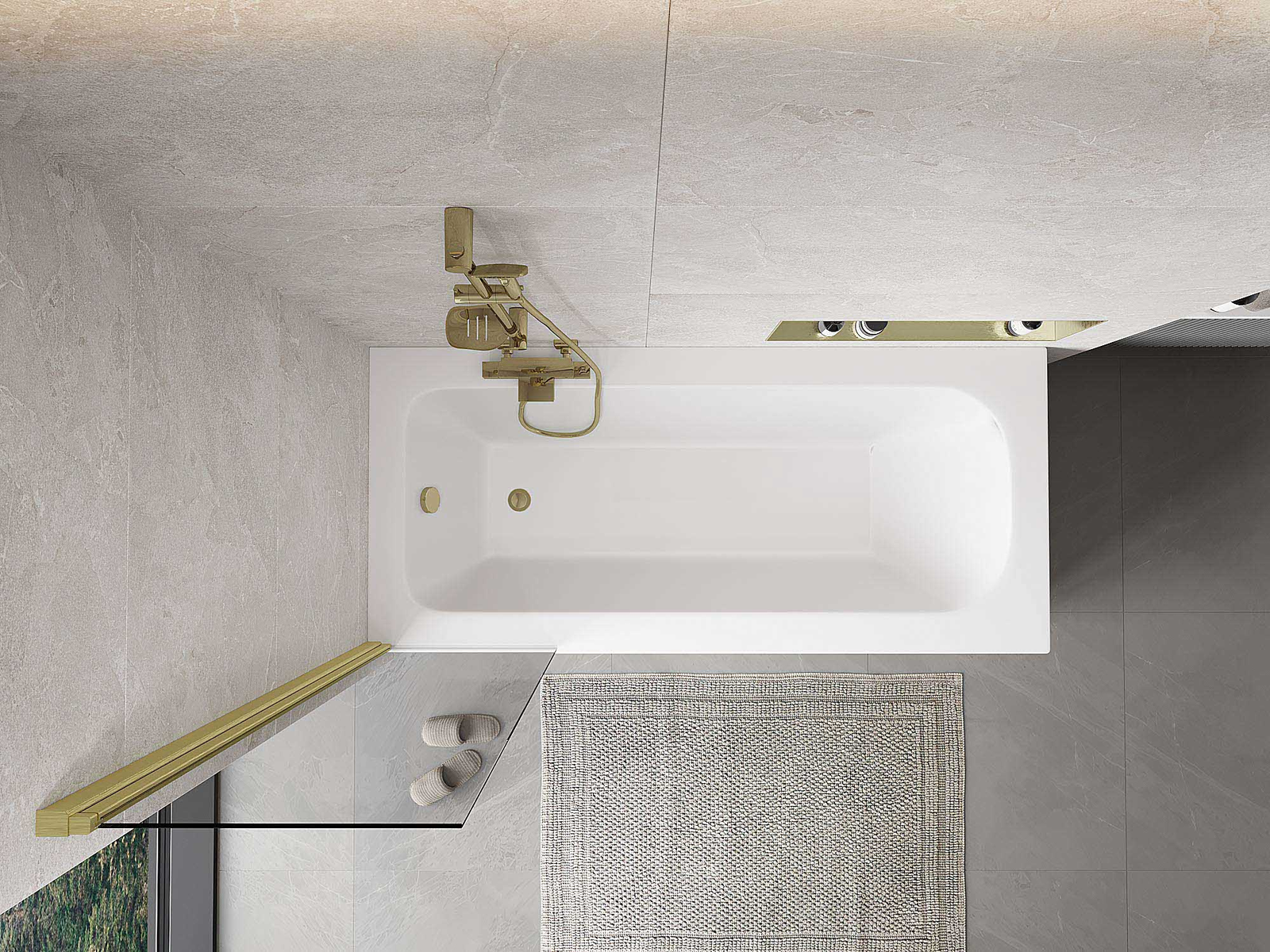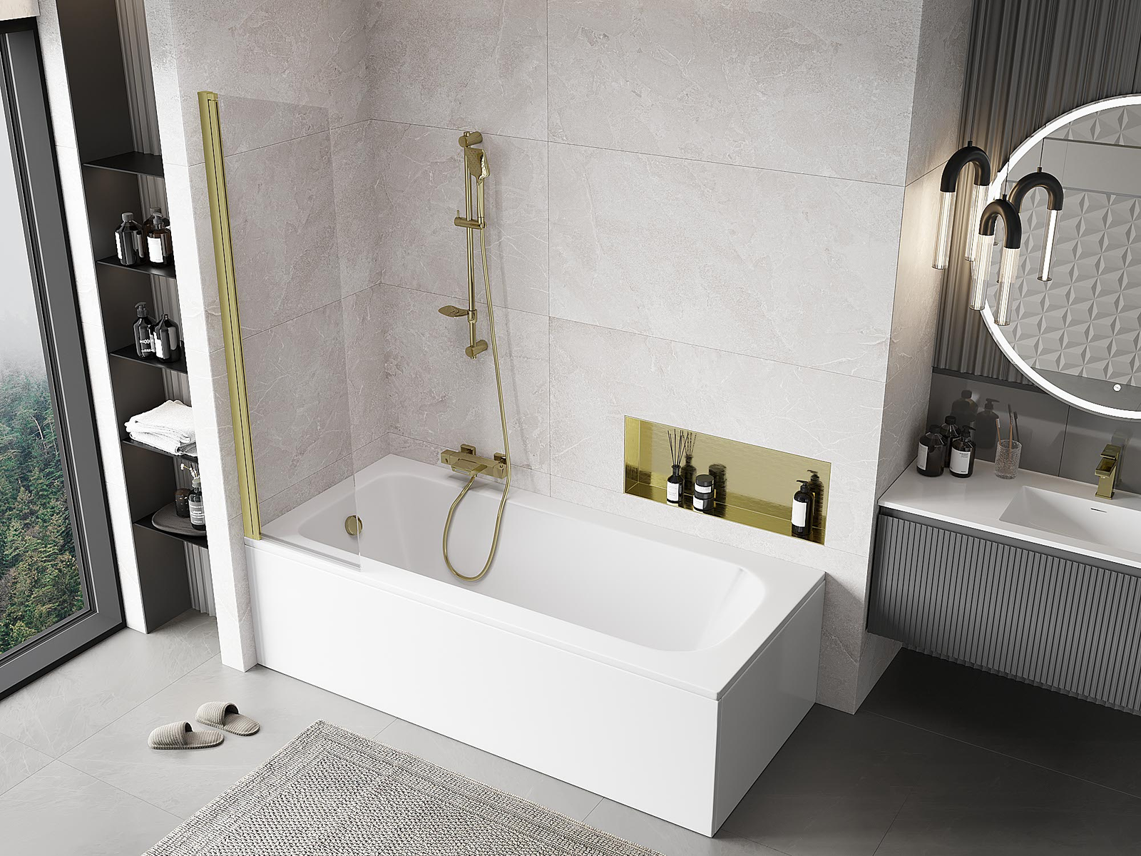 Mexen Mist kádparaván 1-szárnyú 50 x 150 cm, átlátszó, arany kefélt - 8A9-050-001-55-00